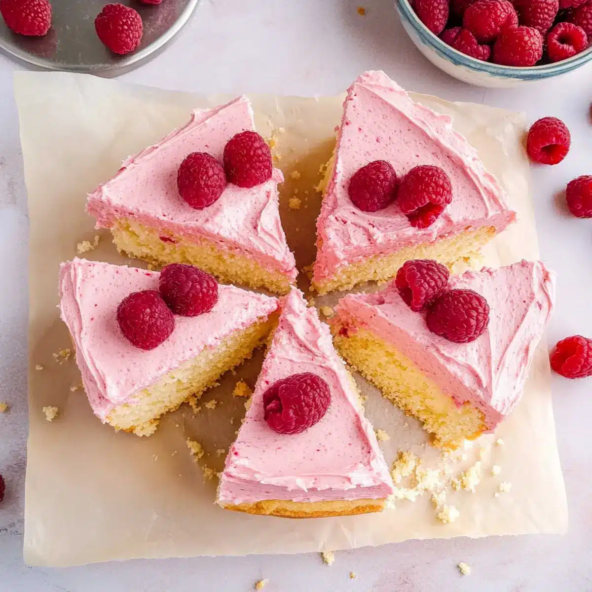 - Frost the cooled cake generously with the raspberry buttercream and enjoy.