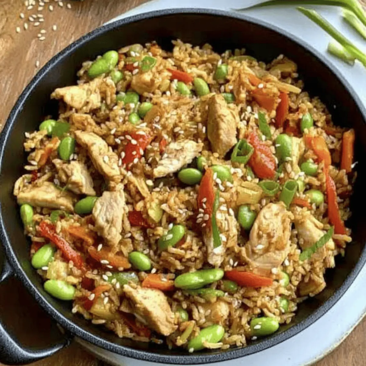 - Return the reserved chicken to the pan, mixing it well with the rice and vegetables. Adjust the flavor by adding more soy sauce if desired, and drizzle in a touch more sesame oil. Stir all the ingredients together and allow them to cook for an additional 2-3 minutes.