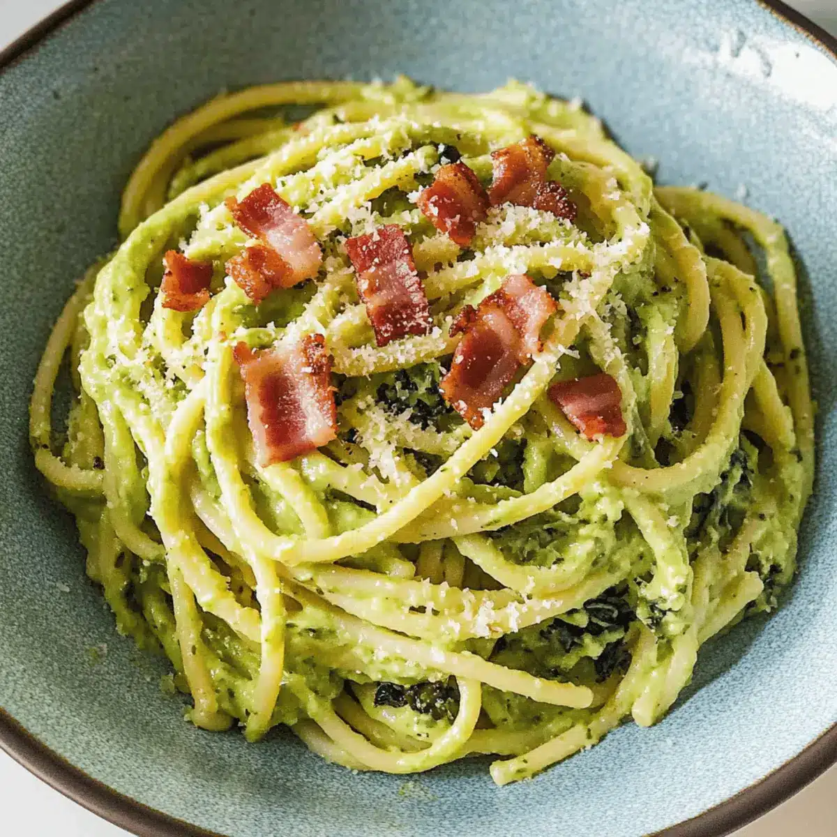 These Avocado Carbonara components make meal prep a breeze! You can prepare the avocado sauce up to 24 hours in advance, blending the avocados, egg yolks, kale, and other ingredients, then store it in an airtight container in the refrigerator to maintain its vibrant color and freshness. To prevent browning, cover the sauce with plastic wrap pressed directly onto the surface before sealing. You can also cook the linguini noodles in advance and refrigerate them for up to 3 days; just toss them with a splash of olive oil to prevent sticking. When ready to serve, simply reheat the pasta in a pan, blend in the reserved hot pasta water to recreate the creamy consistency, and add the already-prepared avocado sauce and crispy bacon for a quick, delicious meal!