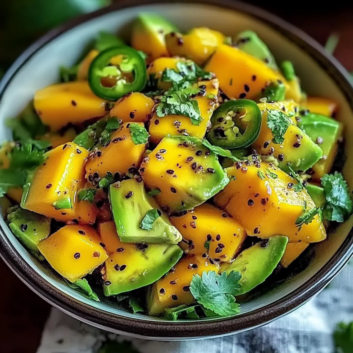 Very! This Avocado Mango Salad is naturally vegan and free of common allergens like gluten and dairy. However, if you know someone has specific allergies (like sensitivity to nightshades), be cautious with the jalapeño and opt for a milder ingredient or omit it entirely.