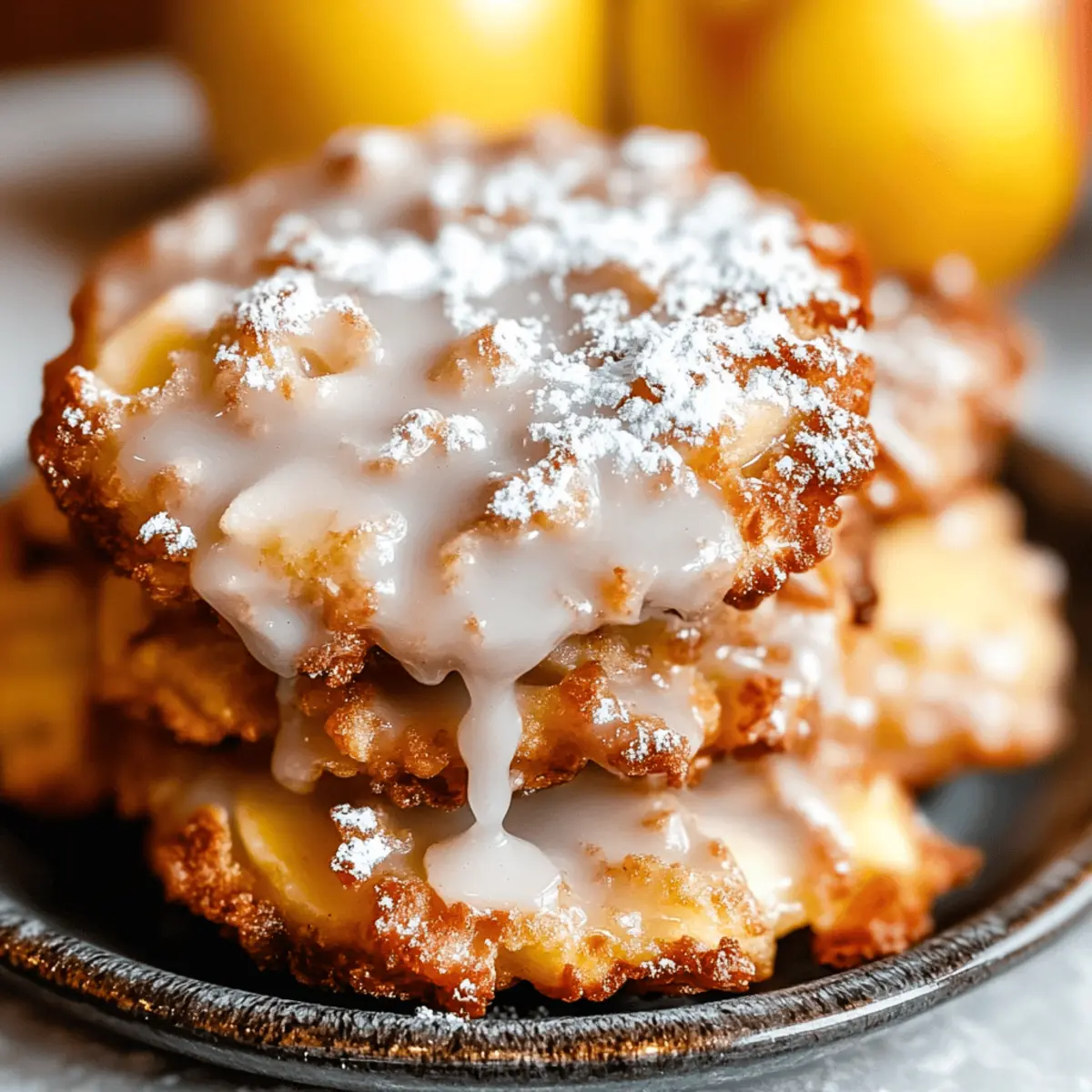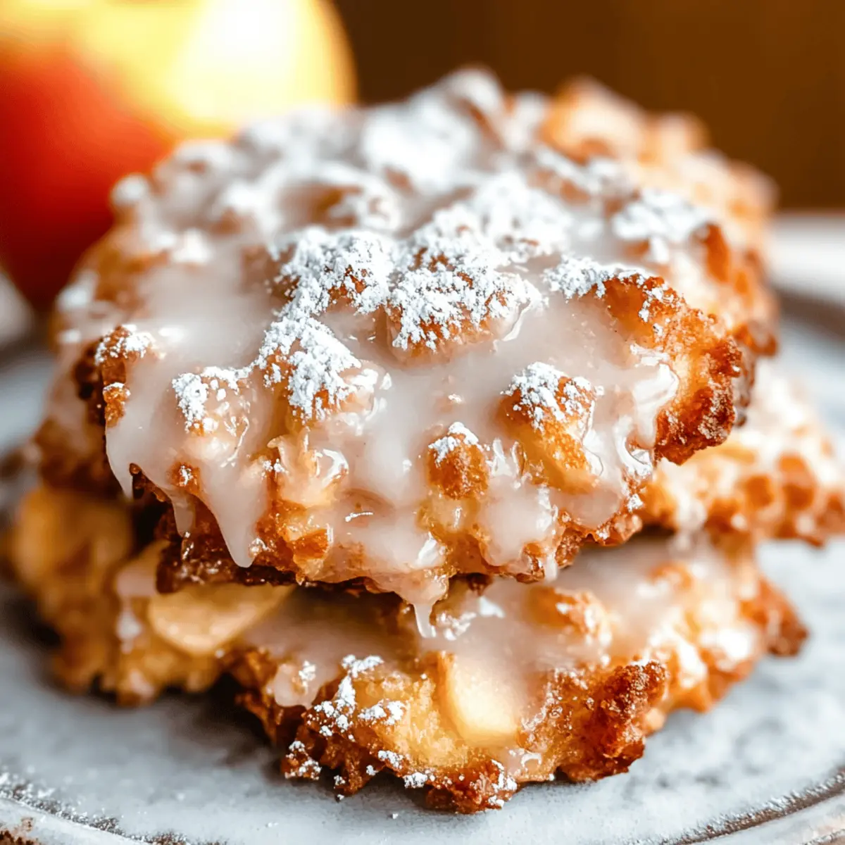Once baked, remove the fritters from the oven and let them cool slightly on the baking sheet. While they cool, whisk together powdered sugar, milk, and vanilla extract to create a sweet glaze. Drizzle this glaze over the warm fritters for an irresistible finish that adds both sweetness and visual appeal.