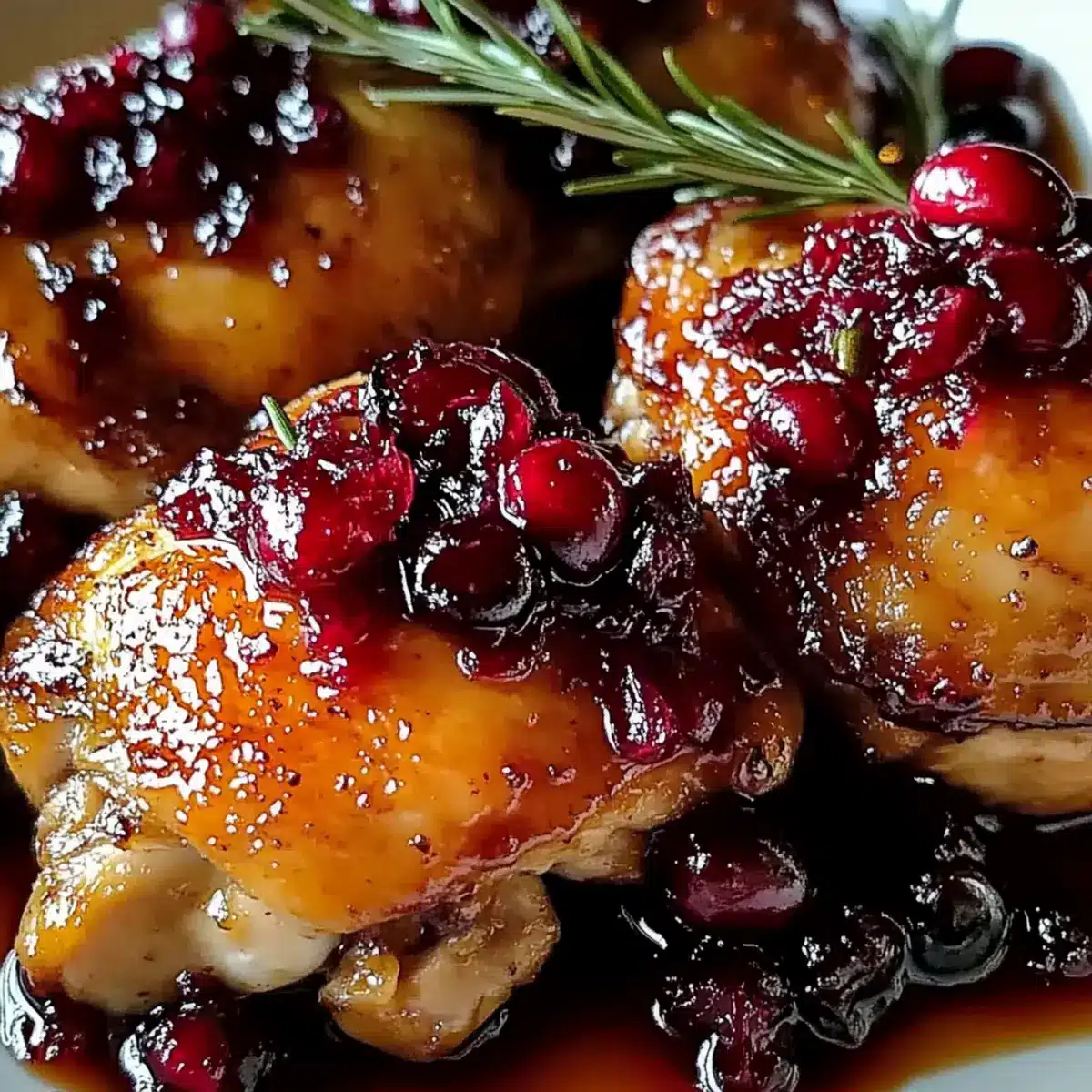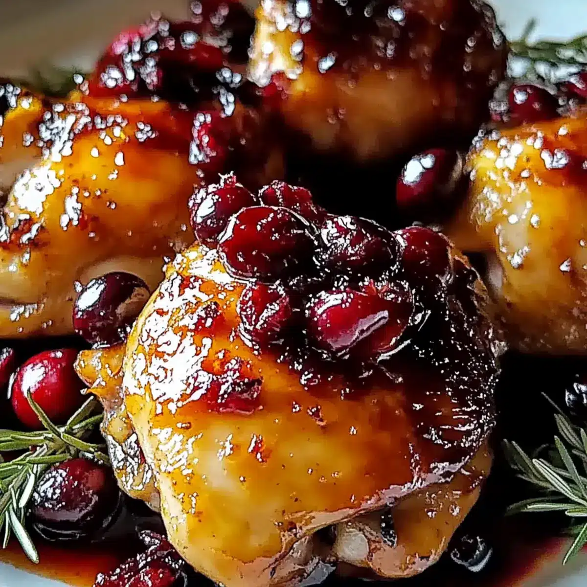 - Pour the cranberry-orange mixture evenly over the chicken thighs, ensuring they are well-coated.