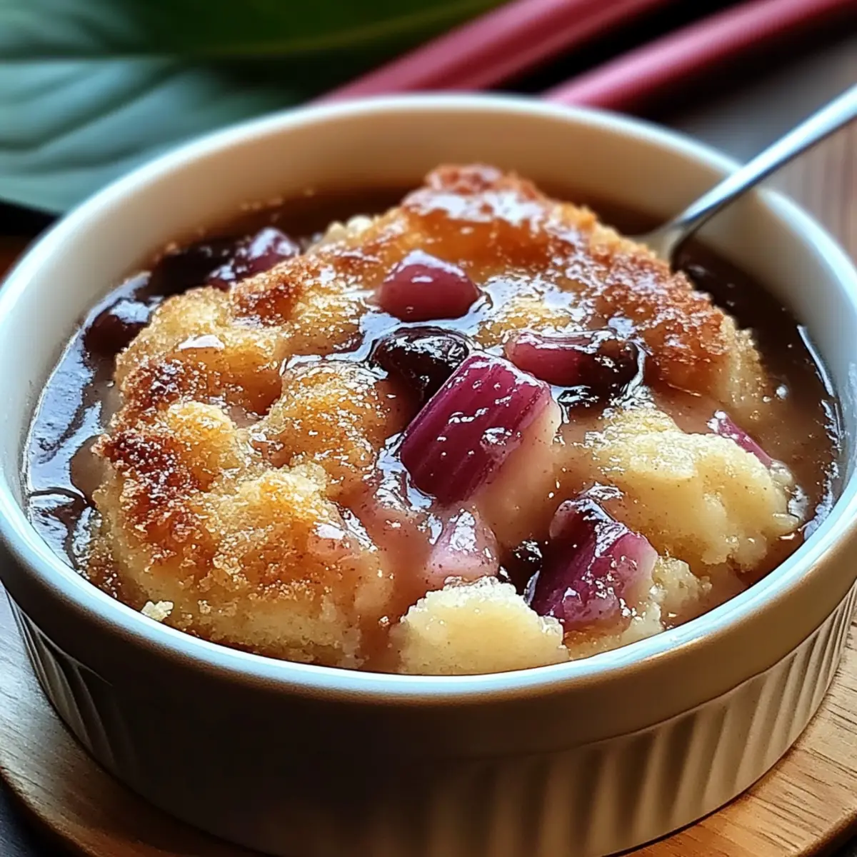 Baked Sticky Rhubarb Pudding - A Slice of Cozy Bliss
