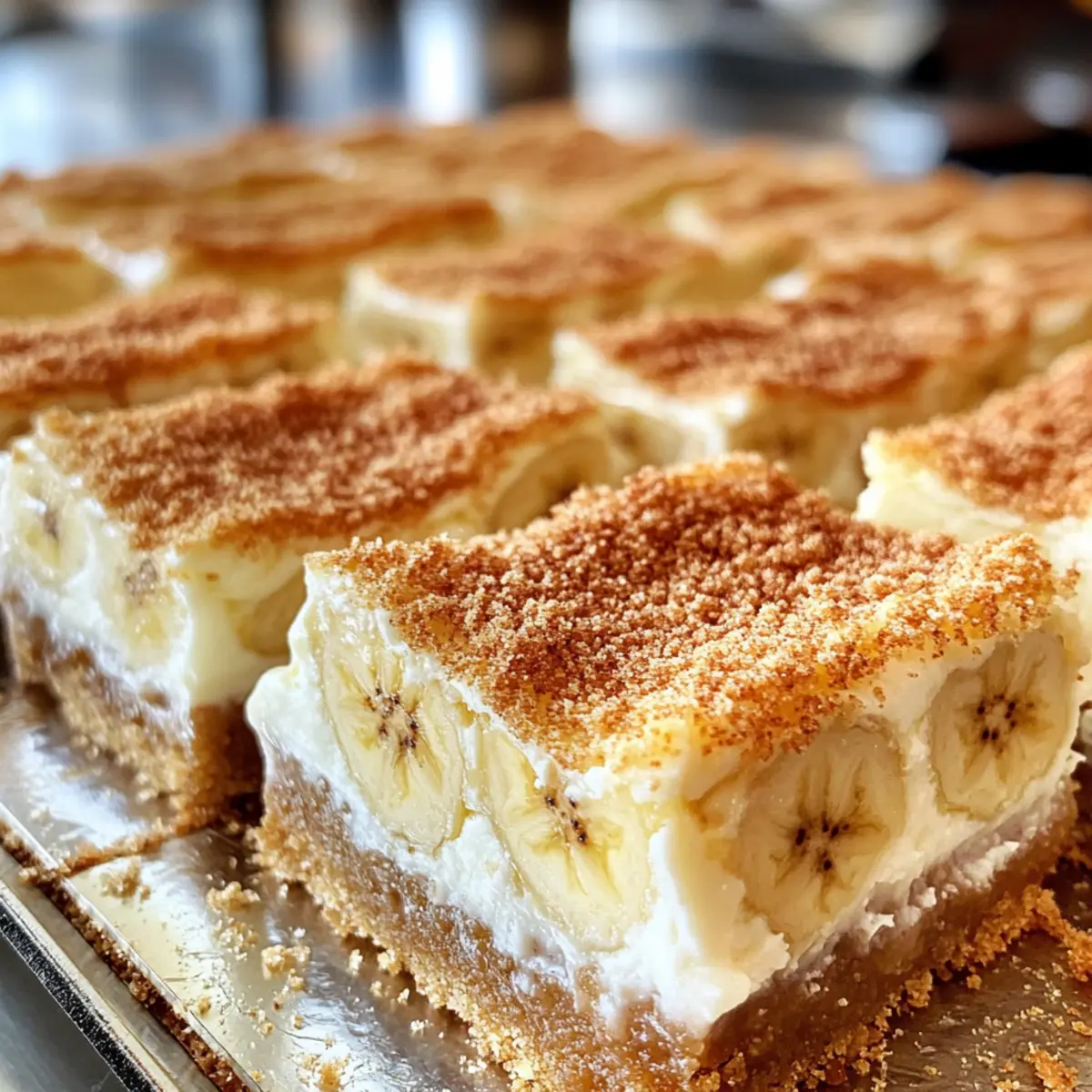 Chocolate Syrup: Drizzling warm chocolate syrup over each square creates a decadent visual and flavor contrast. The richness of chocolate blends beautifully with the creamy, banana-filled cheesecake.
