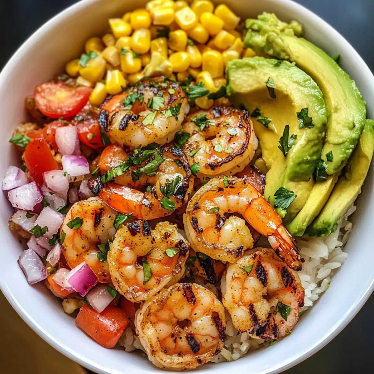Delicious Grilled Shrimp Bowl with Fresh Avocado & Corn Salsa