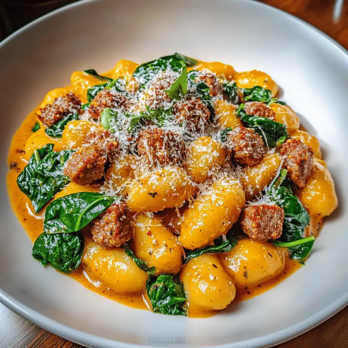Creamy Pumpkin Gnocchi with Spinach and Sausage Delight