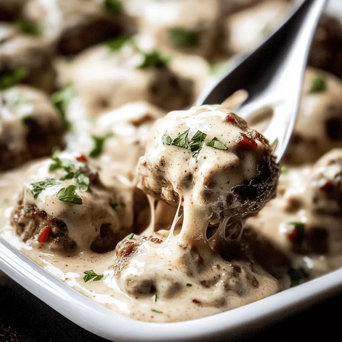 Cheesesteak Meatballs in Creamy Garlic Cheese Bliss