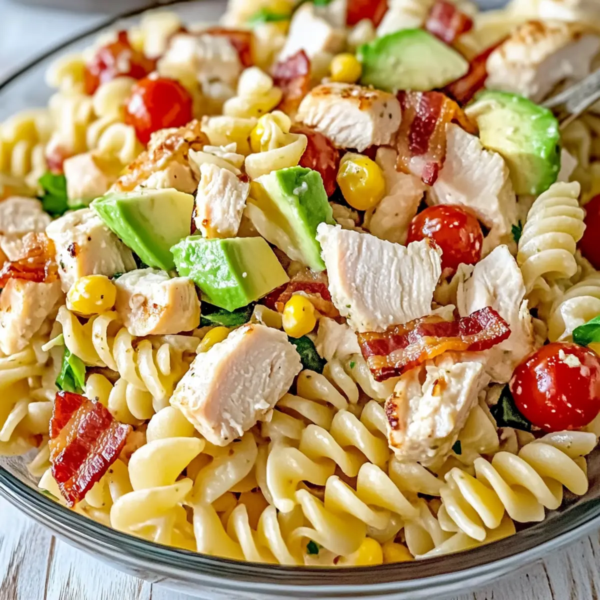These Chicken Club Pasta Salad preparations are perfect for busy home cooks looking to save time! You can easily prepare the pasta, chop veggies, and mix the dressing up to 24 hours in advance; just store each component separately in the refrigerator to maintain freshness. The chopped avocado should be left whole until just before serving to prevent browning. When it’s time to enjoy your salad, simply combine the prepped ingredients with the dressing and add the avocado for that creamy touch. This way, you’ll have a refreshing meal ready with minimal effort, perfect for quick lunches or last-minute gatherings!