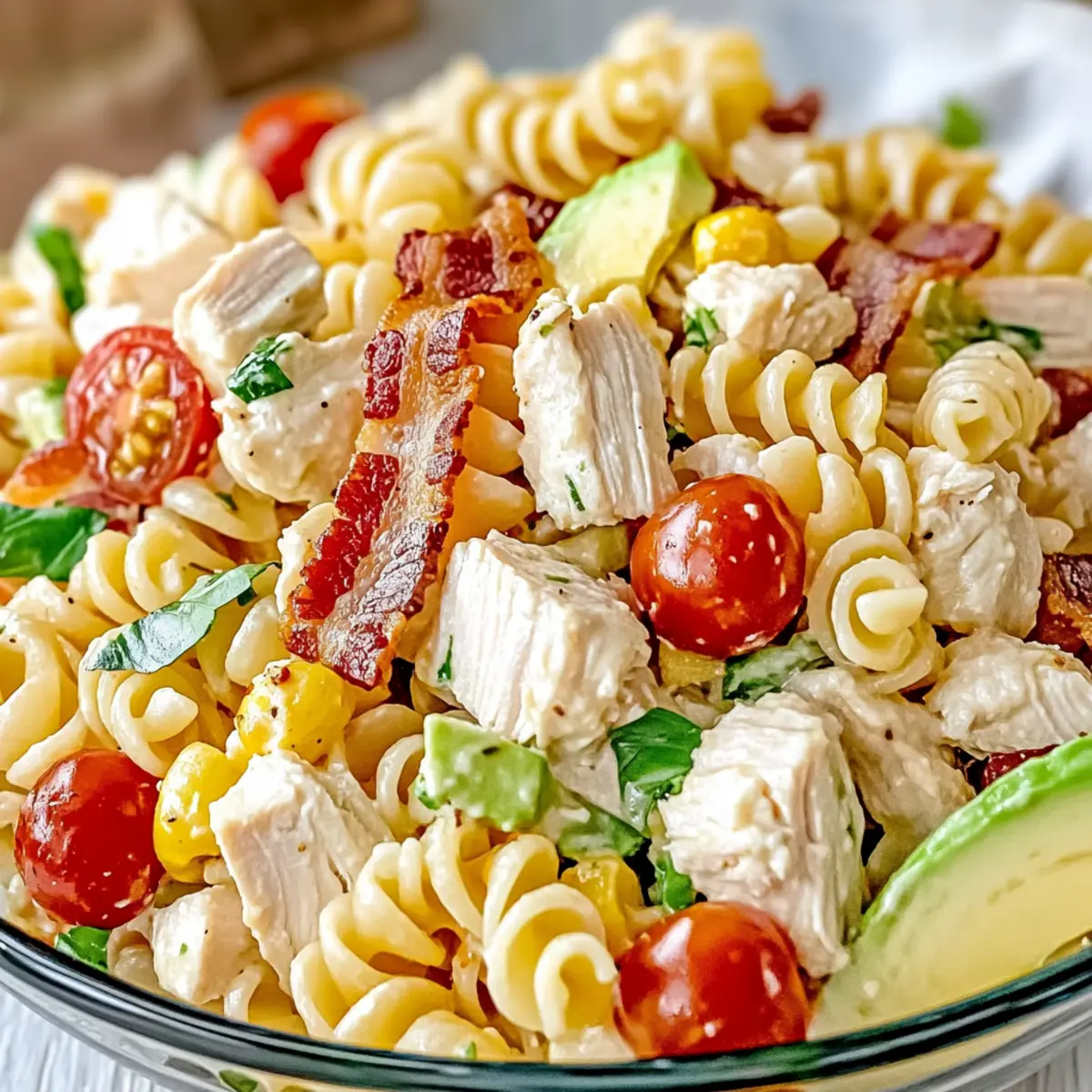 When choosing ingredients like cherry tomatoes and avocado, look for bright colors and firm textures. Avocados should be slightly soft to the touch but not mushy, while tomatoes should have vibrant skin without any dark spots. This ensures that your Chicken Club Pasta Salad is as fresh and delicious as possible!