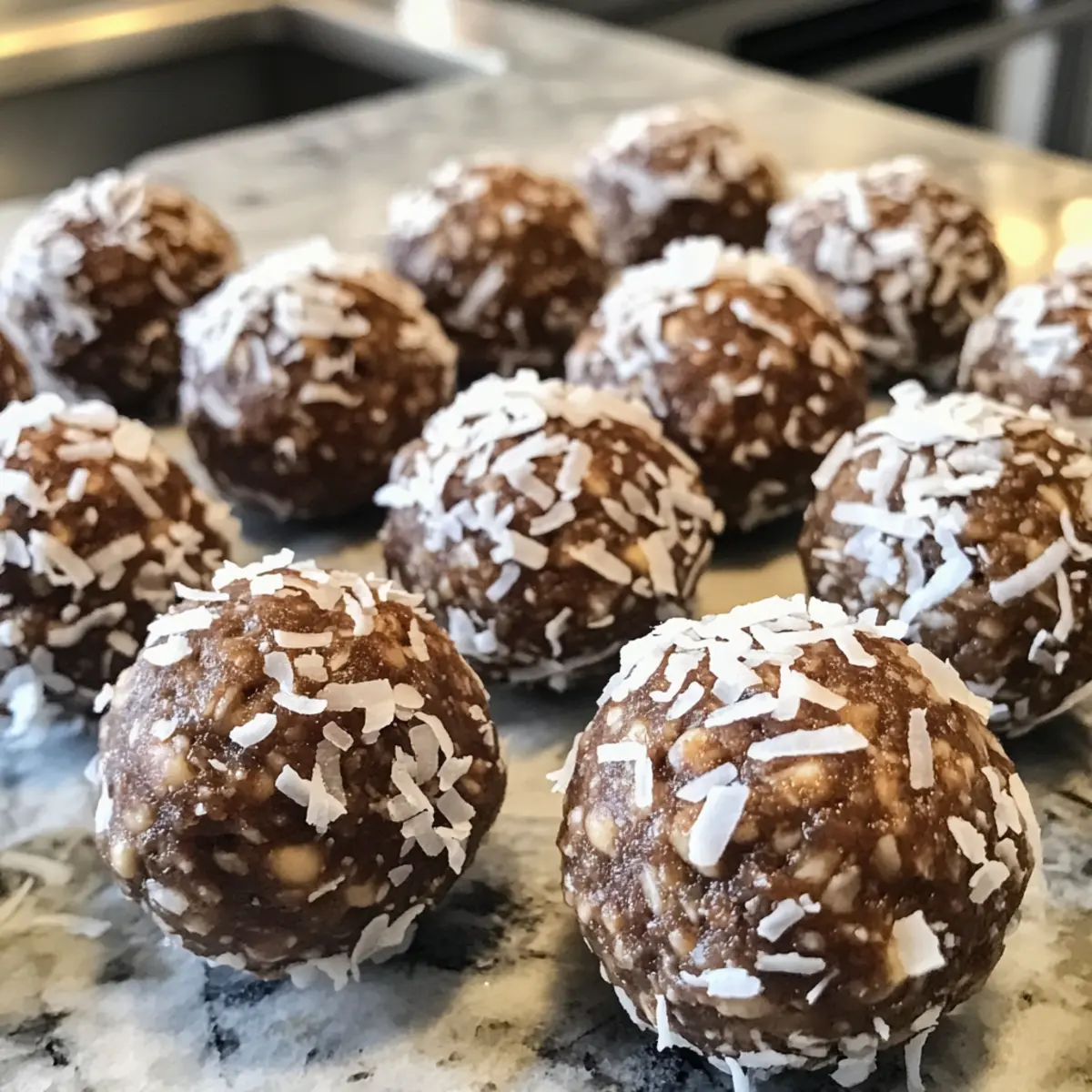 - If desired, roll each ball in shredded coconut for added texture and flavor.