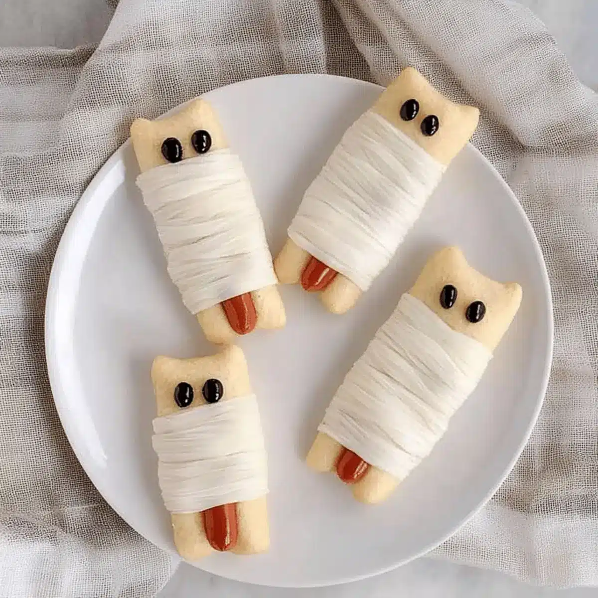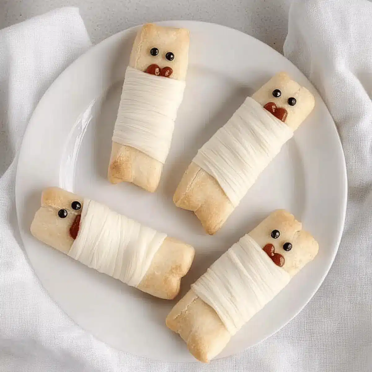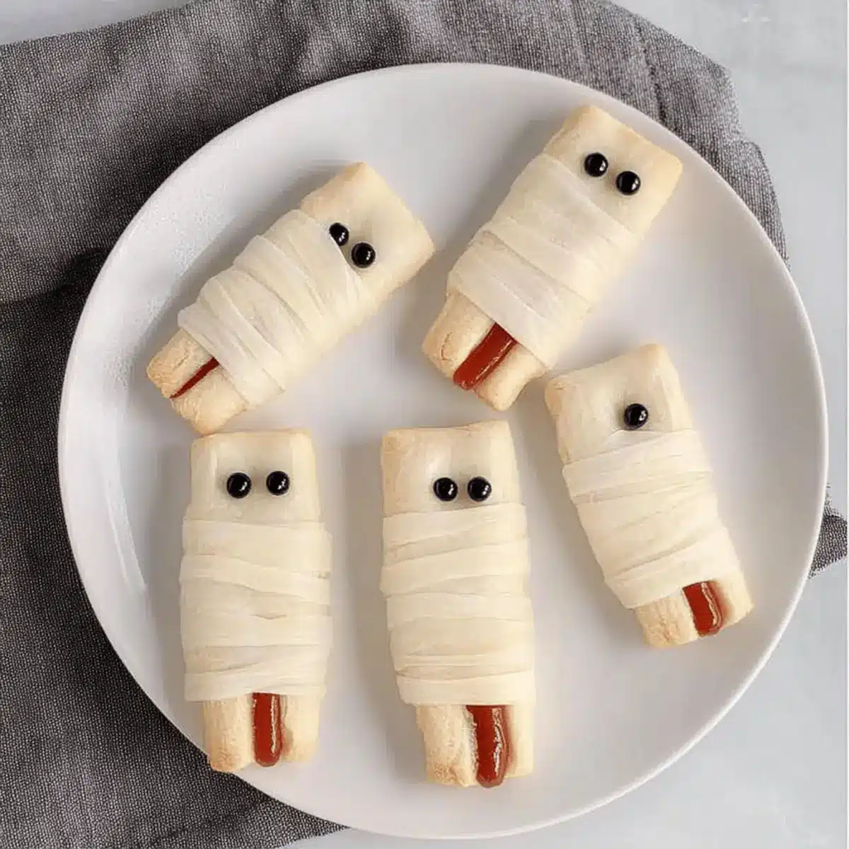 Mummy Dogs: Wrap mini hot dogs in crescent dough for adorable, flaky bites that are savory and satisfying next to the sweet wares.