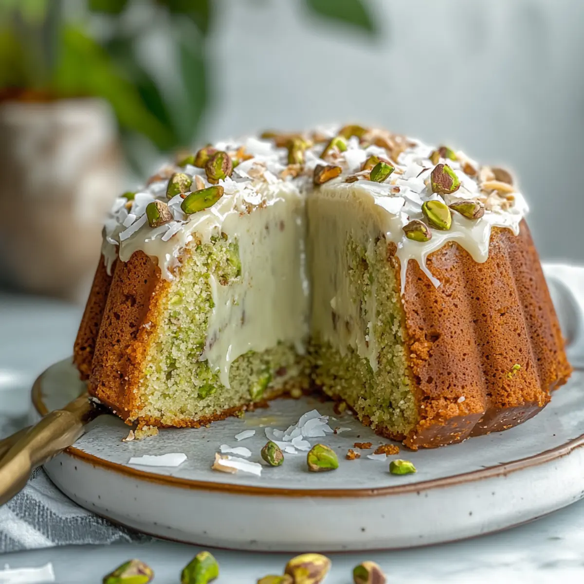 Batter Consistency: Use room temperature eggs and don’t overmix the batter; this helps maintain a light texture in your Coconut and Pistachio Pudding Cake.