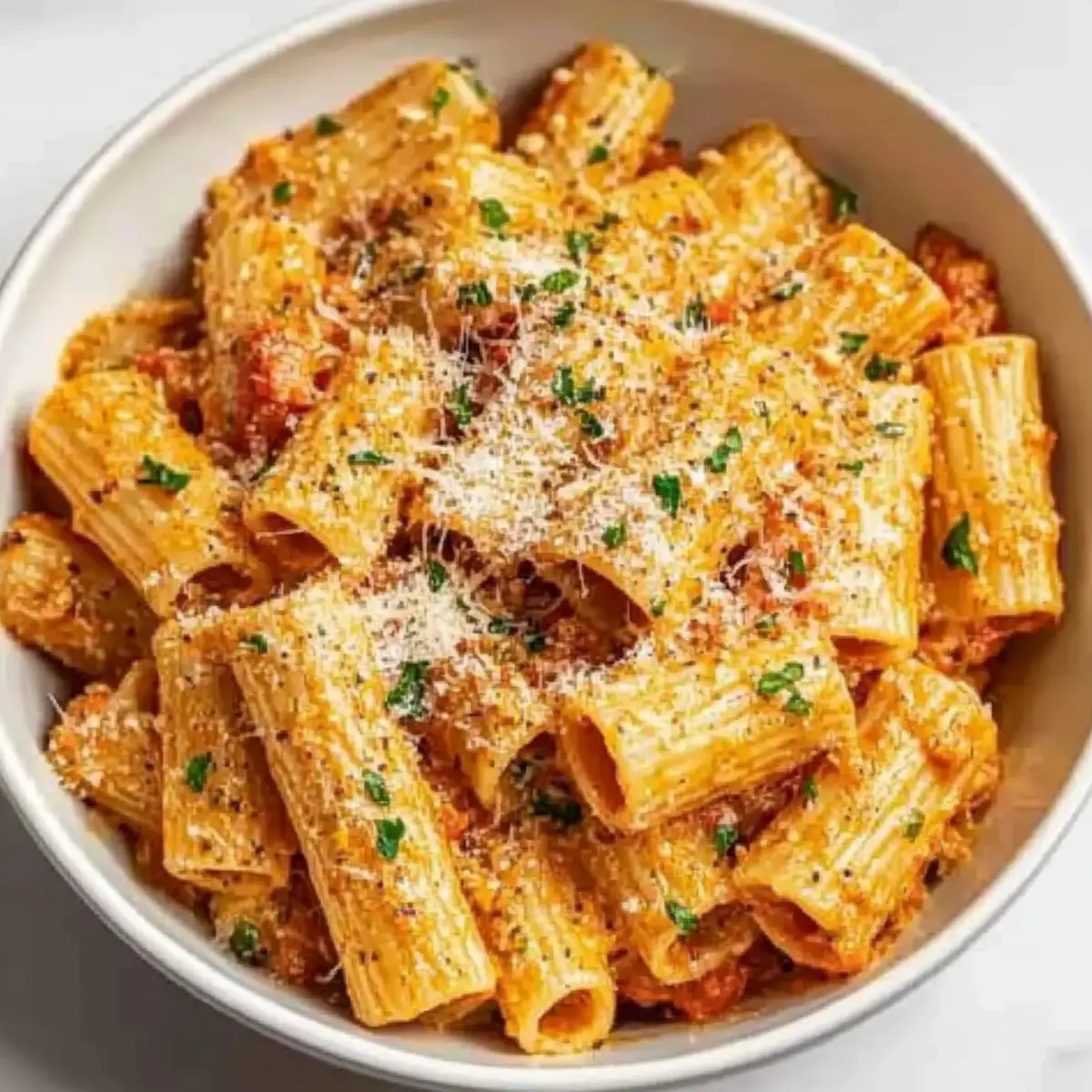 Taste the rigatoni and adjust the seasoning with more salt or pepper if needed. Serve immediately in warm bowls, garnished with additional grated Parmesan and fresh parsley for a pop of color. Dig in while it’s hot to enjoy the dreamy flavors and creamy texture of this comforting dish, perfect for any weeknight dinner!