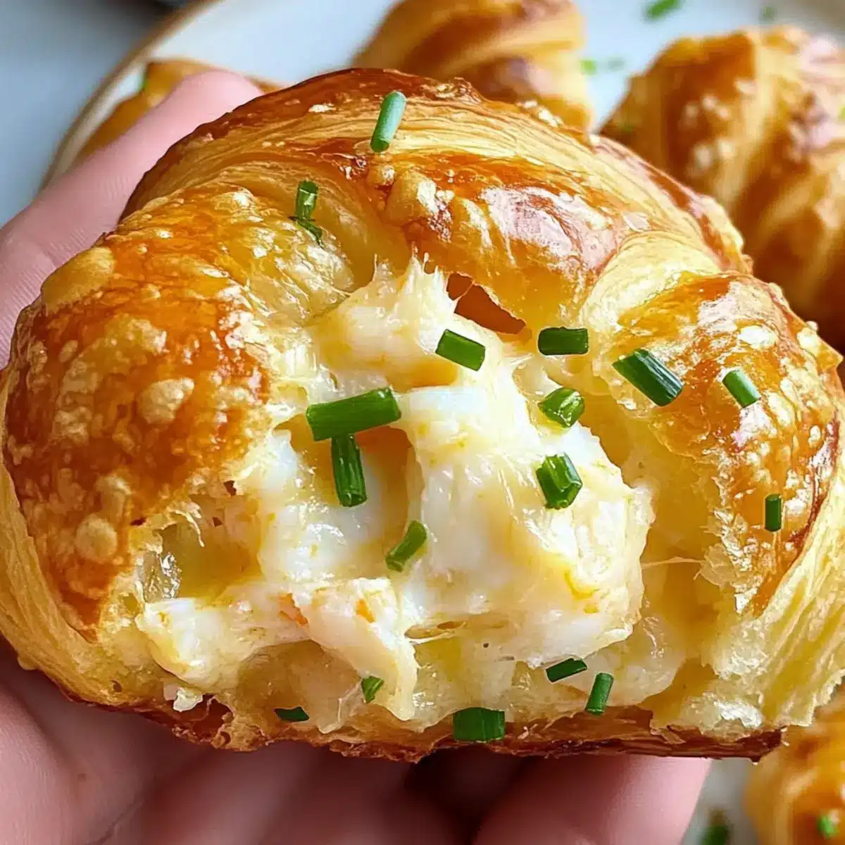 - Stuff Croissants: Fill each croissant with the crab dip mixture using a piping bag. Arrange on a baking sheet.