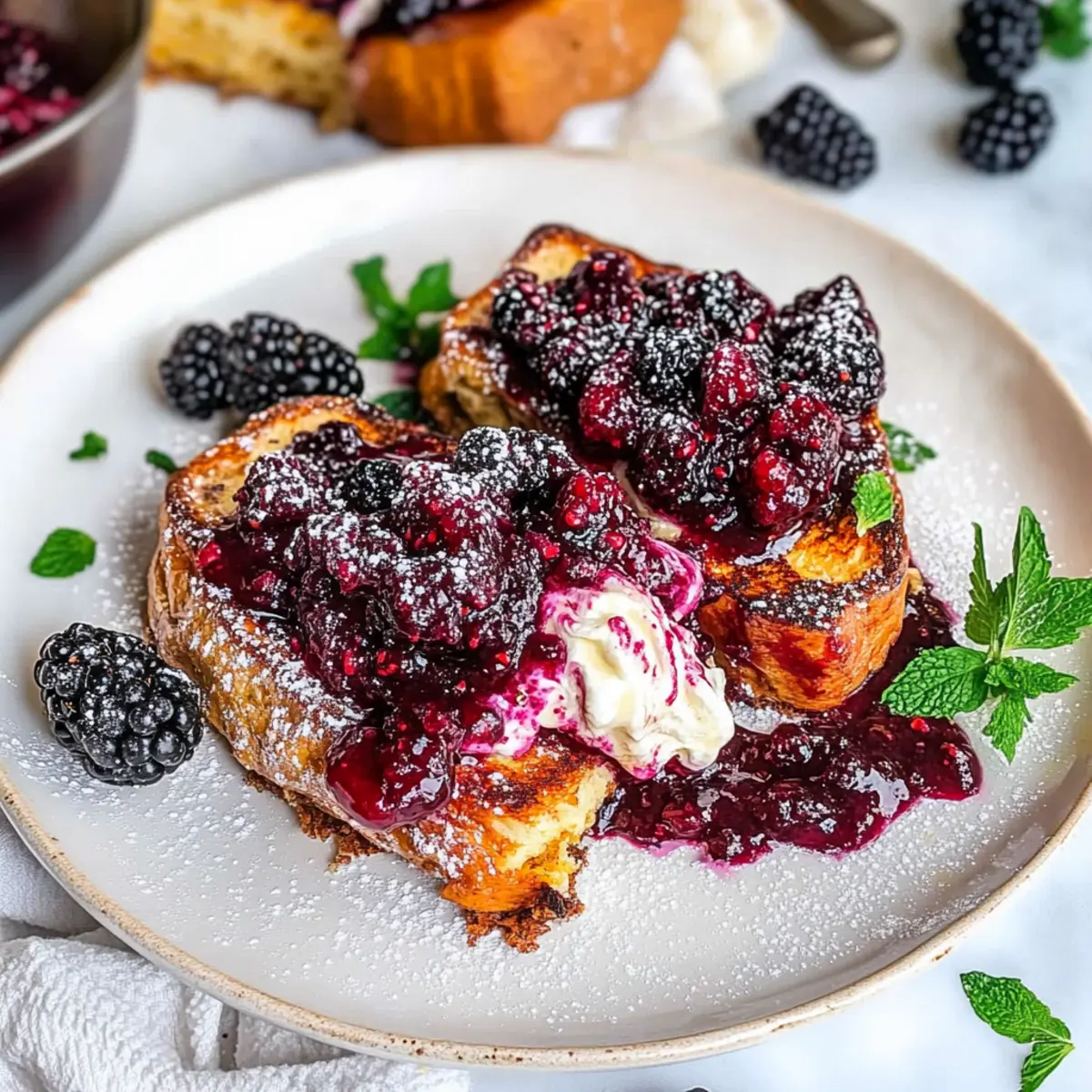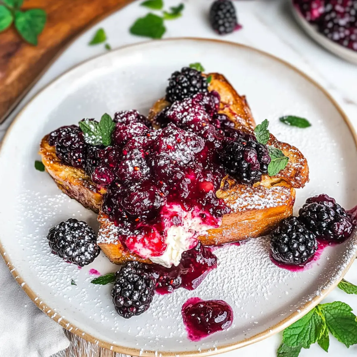 Indulge in Cream Cheese Stuffed Blackberry Compote French Toast