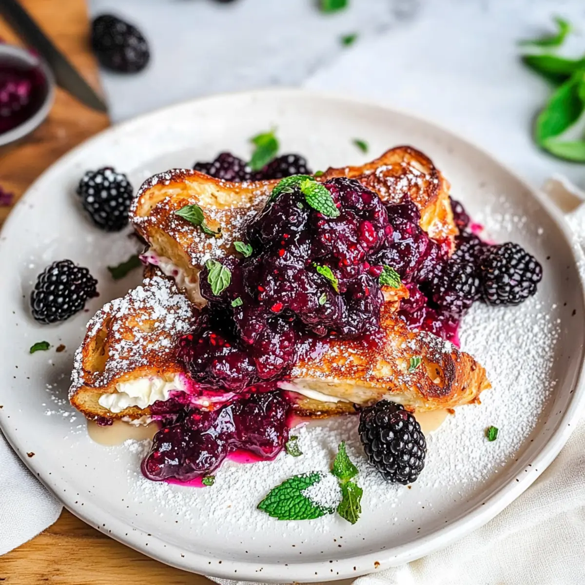 Gourmet Experience: This Cream Cheese Stuffed Blackberry Compote French Toast transforms your breakfast table into a chic café setting.