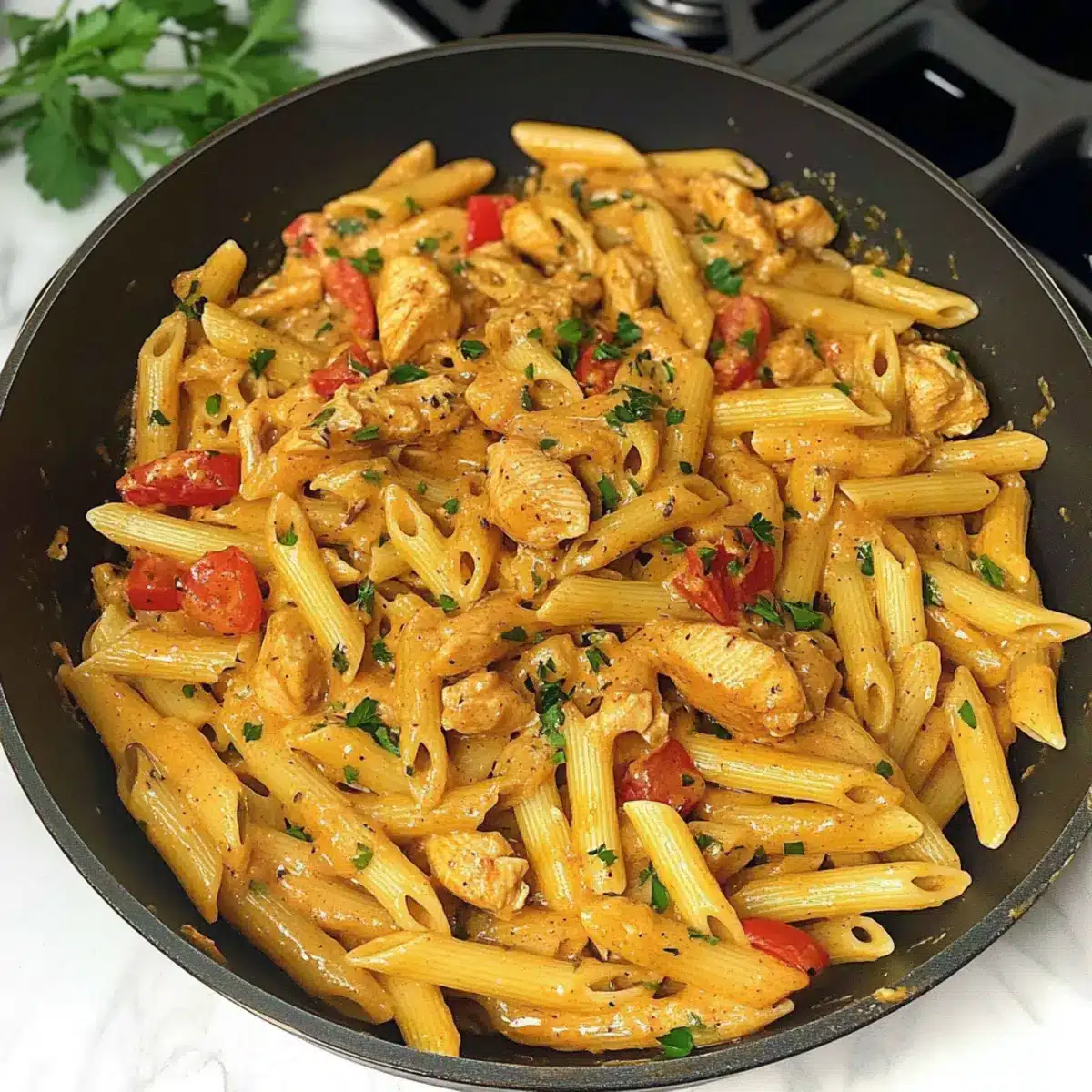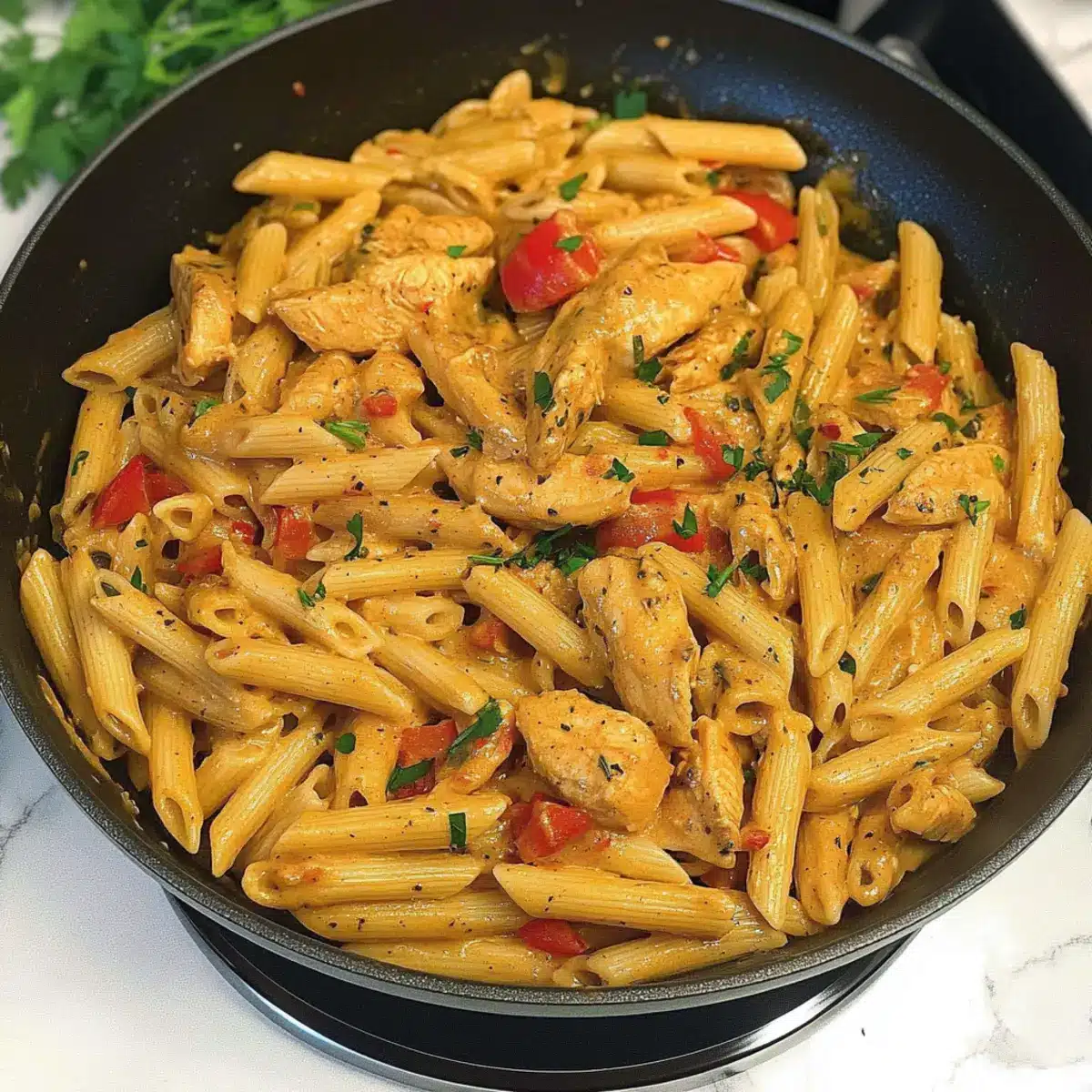 Finally, remove the skillet from heat and presentation is key! Serve your Creamy Cajun Chicken Pasta immediately, garnished with freshly chopped parsley and additional grated Parmesan if desired. Enjoy this comforting dish, perfect for impressing family and friends or quick weeknight meals!
