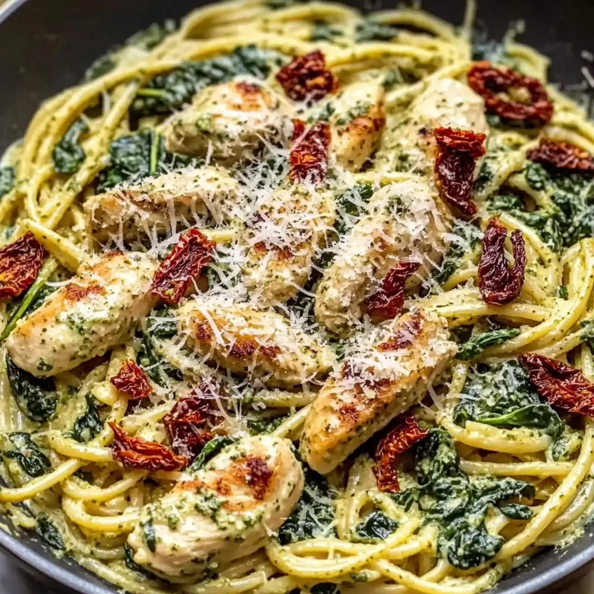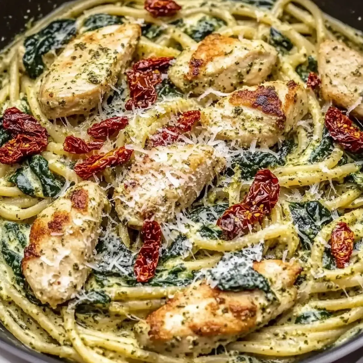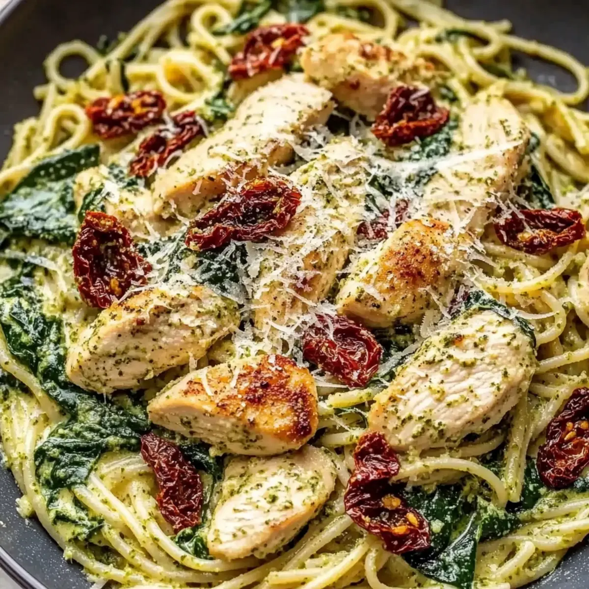 Flavor explosion: The creamy pesto sauce combined with sun-dried tomatoes and fresh spinach creates a delightful blend of savory and refreshing flavors.