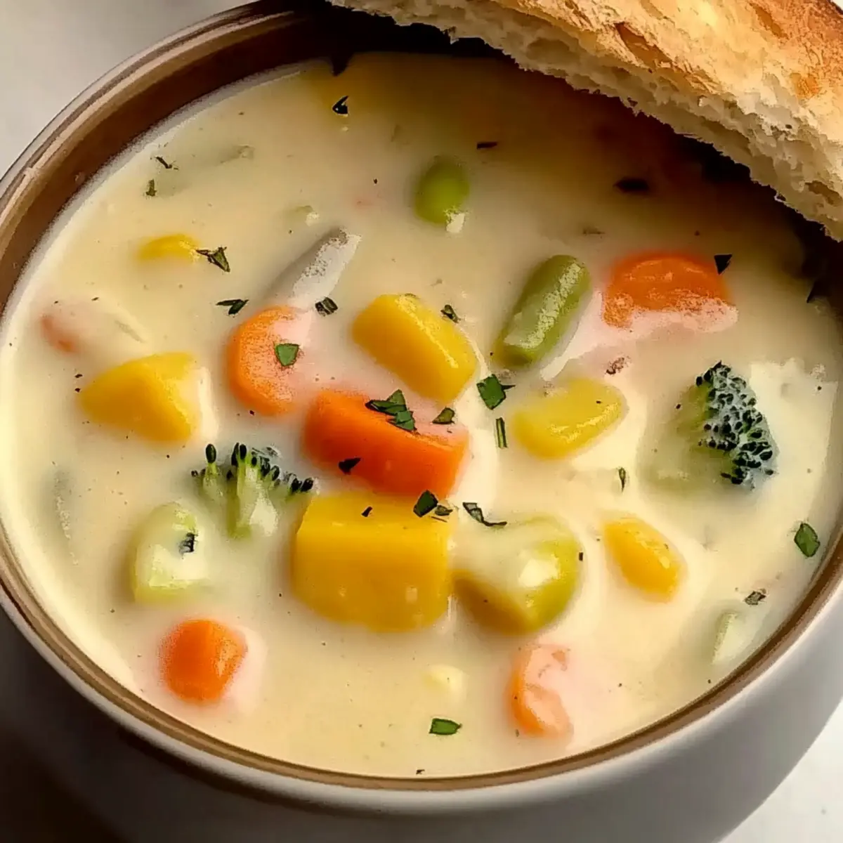 Comforting Delight: This creamy vegetable soup wraps you in warmth with its silky texture and wholesome ingredients, perfect for chilly nights.