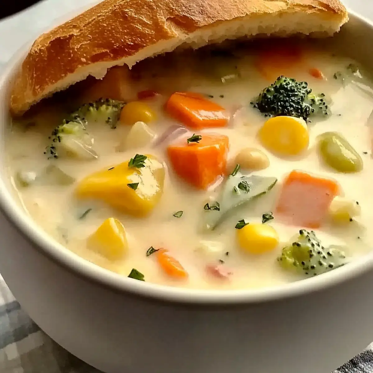 This creamy vegetable soup is not only a blend of fresh ingredients but also a canvas for your culinary creativity! Enjoy crafting this warm and satisfying dish.