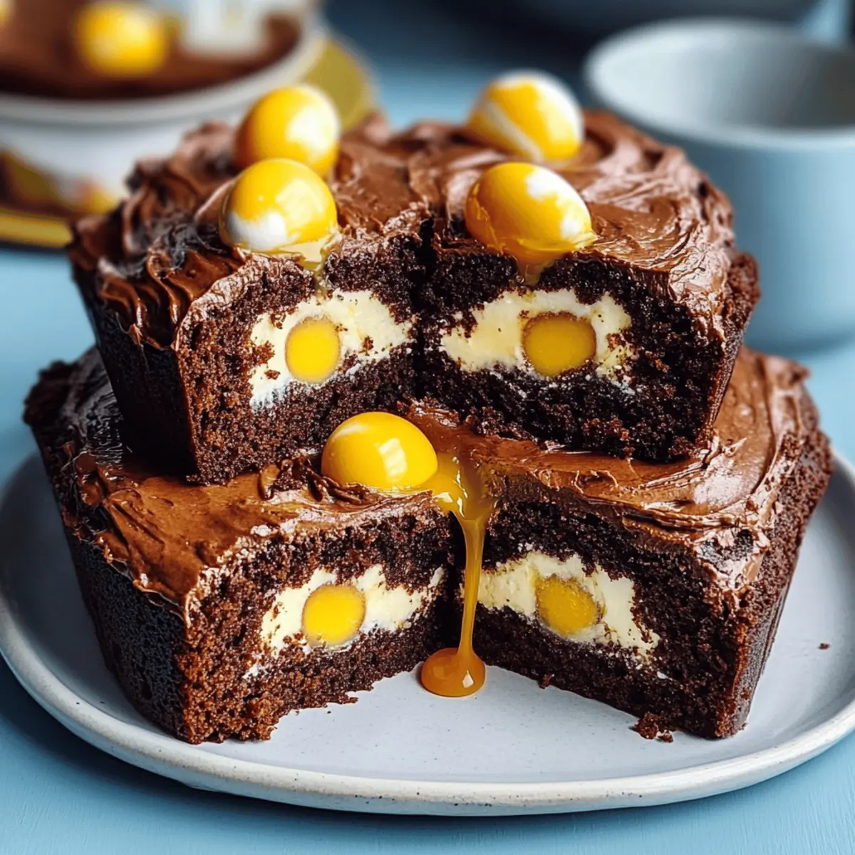Reheating: If desired, defrost slices overnight in the fridge and enjoy them at room temperature or gently warm them in the microwave for a few seconds, enhancing the gooey Crème Egg filling!
