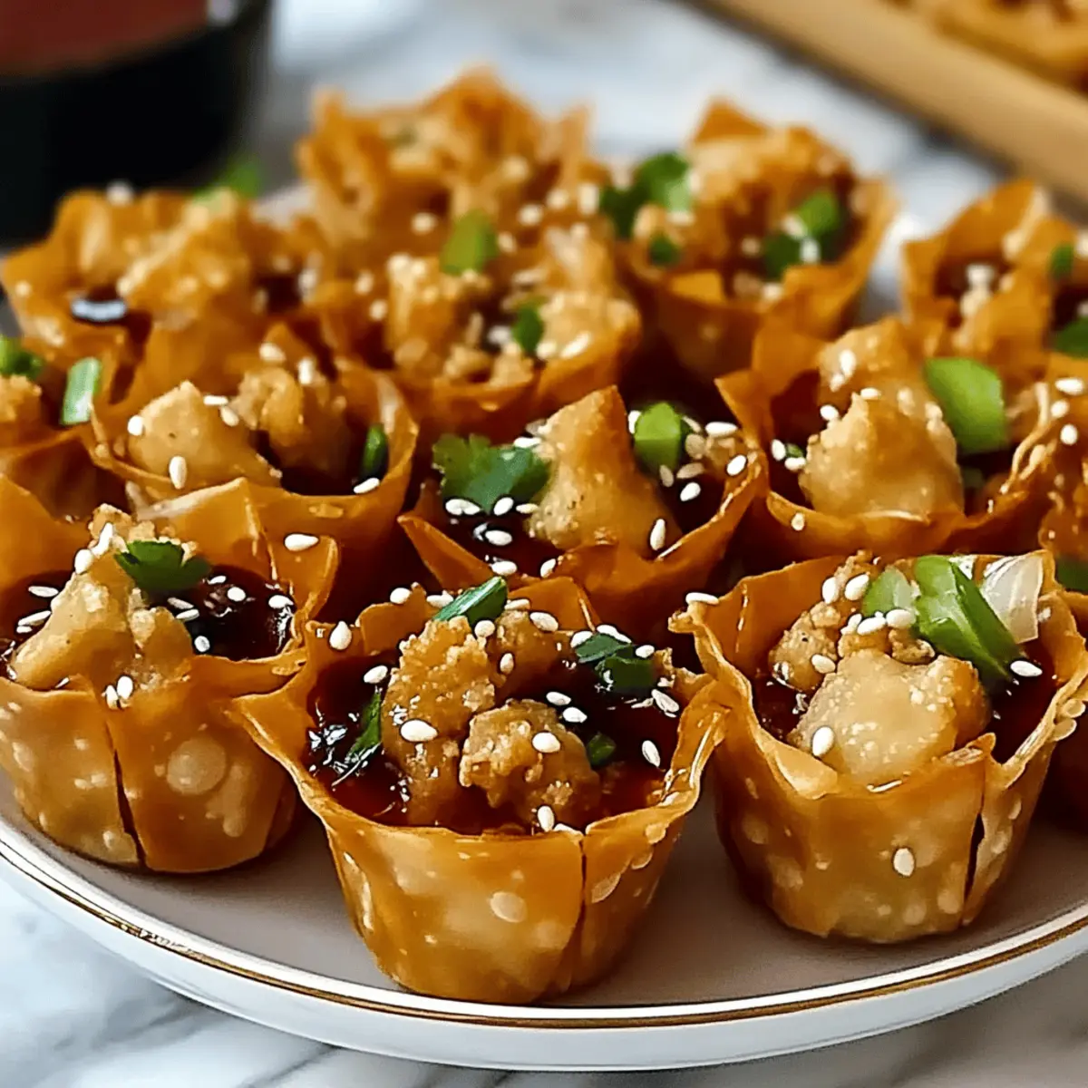 Sweet Soy Glaze: A luscious dipping sauce that enhances the savory essence of the wonton cups, making each bite unforgettable.