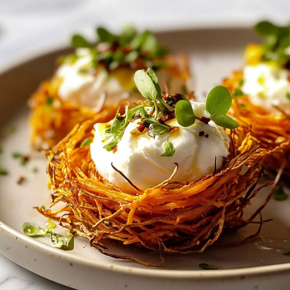 - Fresh Herbs – Garnish with basil or thyme for added freshness; they contrast nicely with the sweet potato nests.