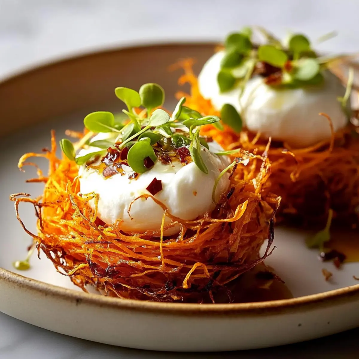 - Roasted Brussels Sprouts: A slightly charred, savory side brings earthiness that enhances the sweet and spicy notes from the nests. The crispy texture of the sprouts adds another level of crunch, harmonizing beautifully with the soft burrata.