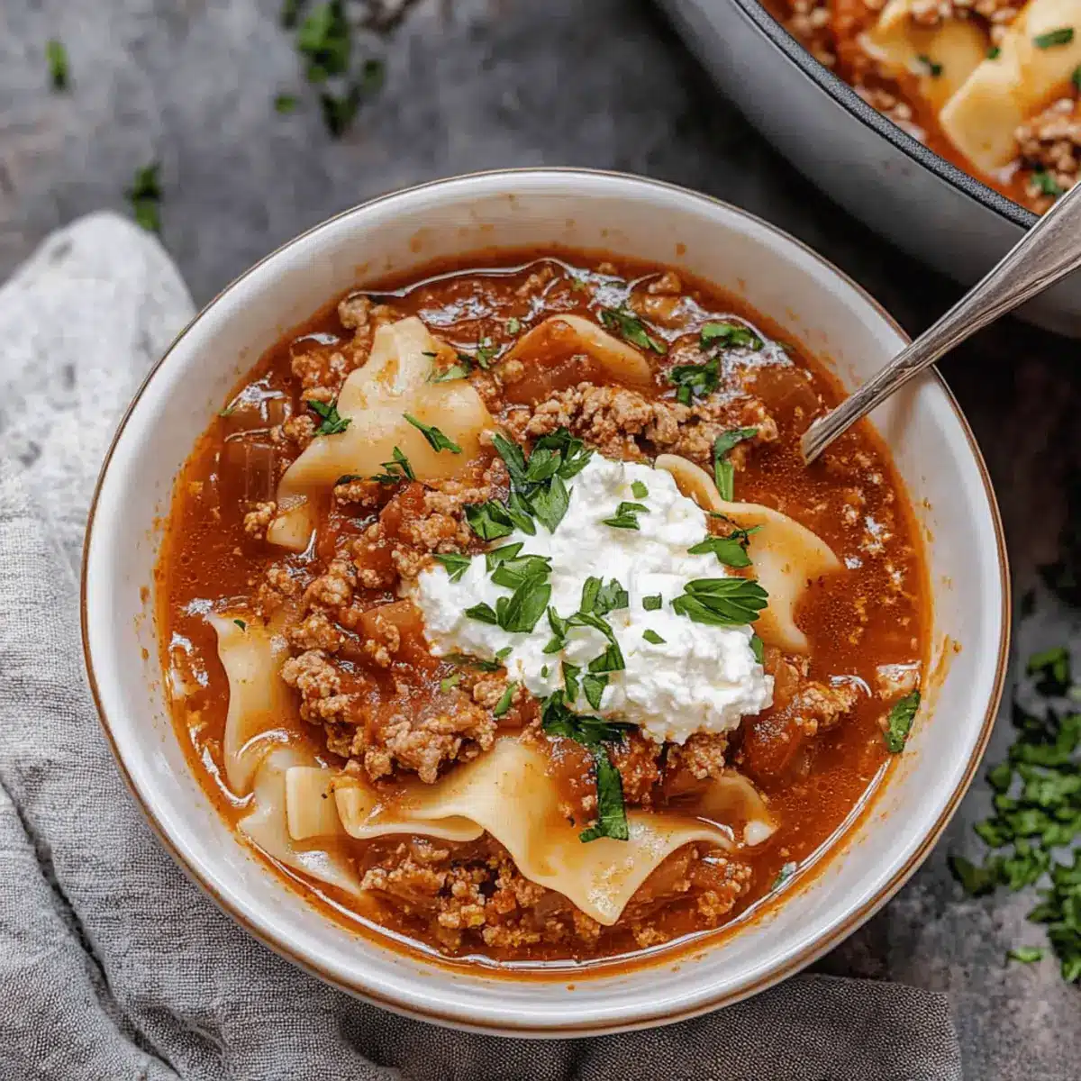 Ease of Preparation: With just a few simple steps, you’ll have a delicious meal cooking while you go about your day. Hearty and Satisfying: This soup offers all the comforting elements of classic lasagna, packed into a warm bowl. Flavorful Layering: Each ingredient works together, creating a symphony of classic Italian flavors that will impress everyone at your table. Customizable Options: Prefer something lighter? Swap ground beef for turkey or even make a vegetarian version packed with veggies! For more easy recipes like this, check out our ultimate guide to slow cooker dinners. Perfect for Meal Prep: Store leftovers easily, and enjoy the comforting taste all week long!