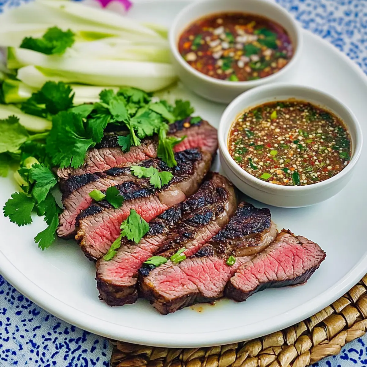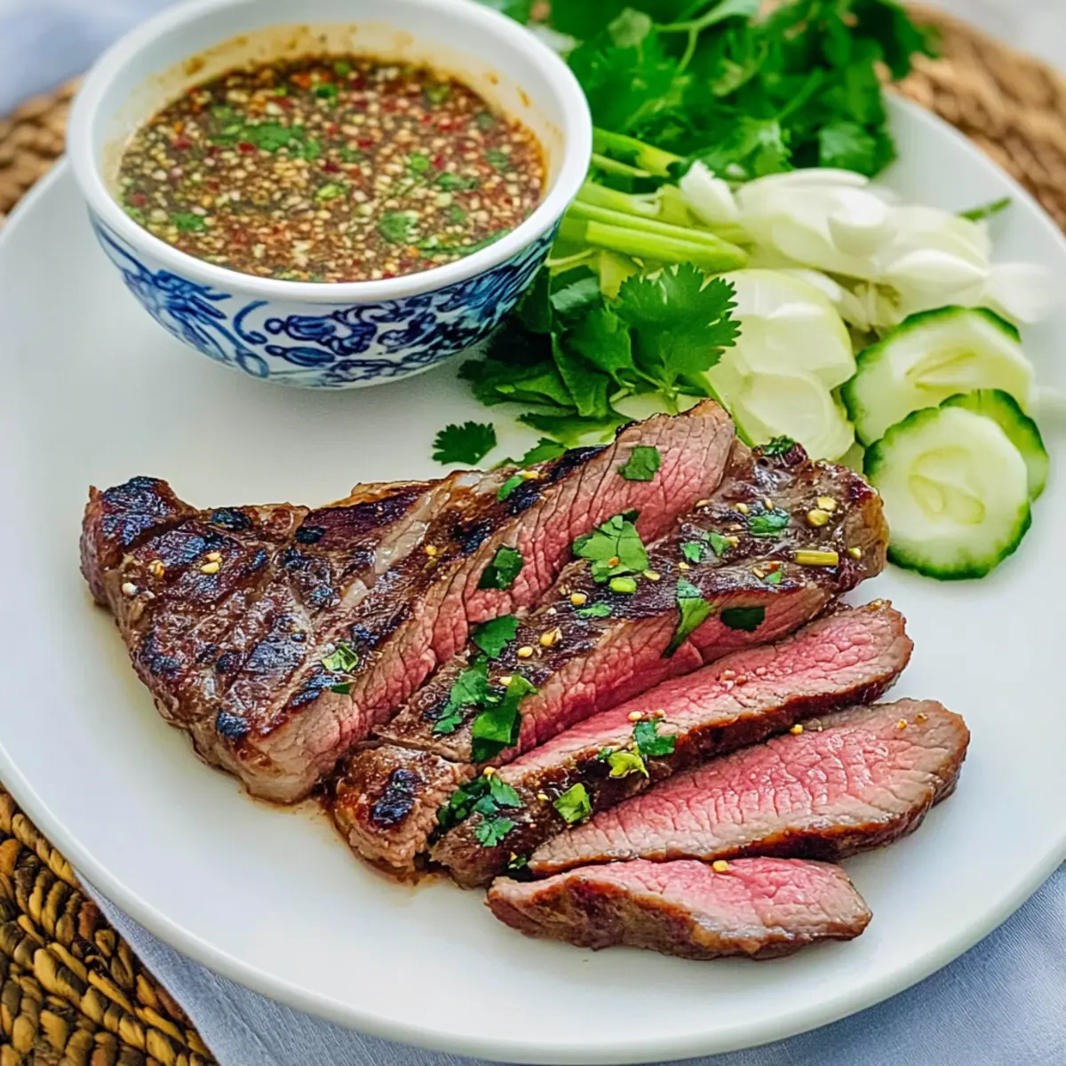 Savory Crying Tiger Beef with Spicy Nam Jim Jaew Sauce Delight