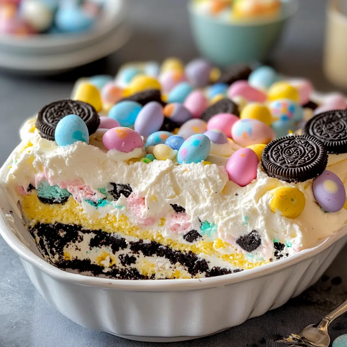 Party Favorite: This Easter Oreo Cookie Casserole is a guaranteed crowd-pleaser, bringing fun to any gathering with its eye-catching colors and nostalgic flavors.