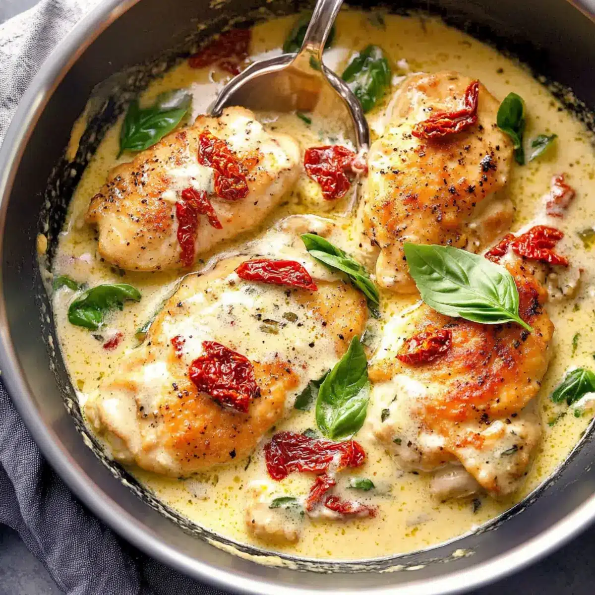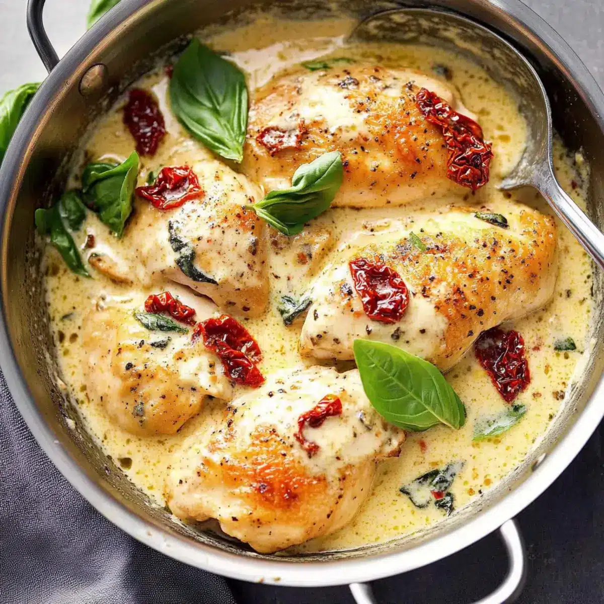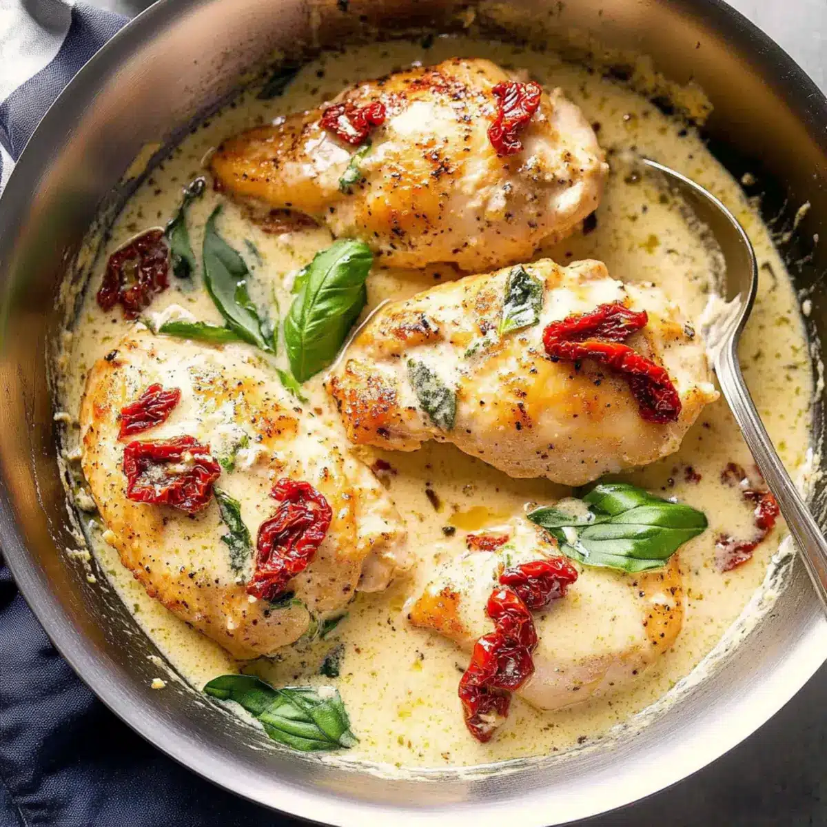 - Add the Sun-Dried Tomatoes: Stir in sun-dried tomatoes and let simmer for 2-3 minutes until sauce thickens.