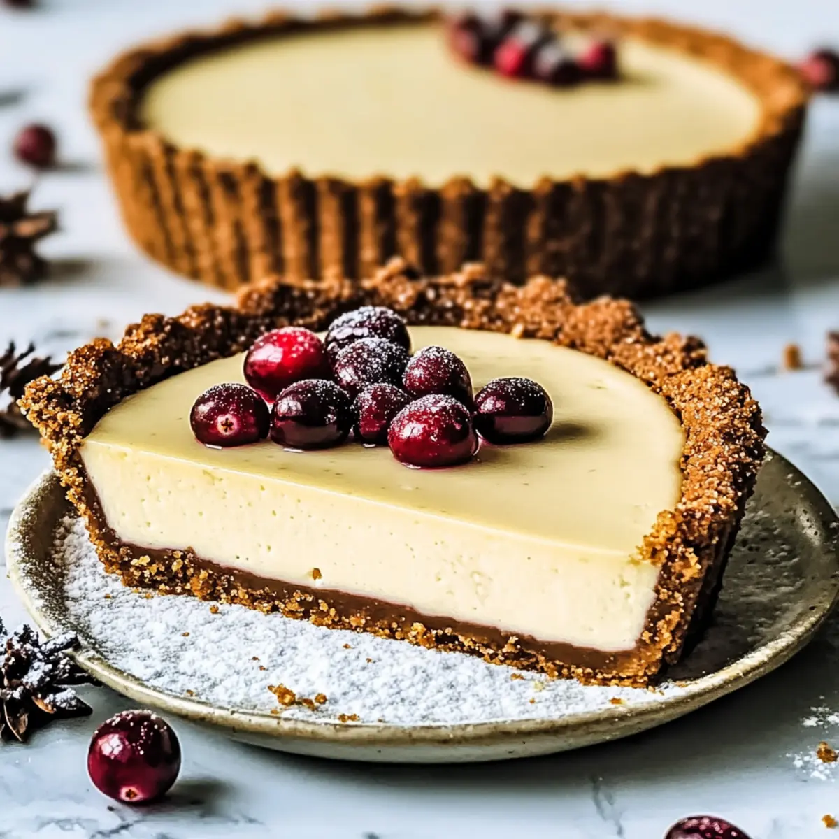 Chocolate Cookie Crust: Swap the gingerbread crust with a crushed chocolate cookie base for a rich, decadent shift that pairs beautifully with the creamy filling.