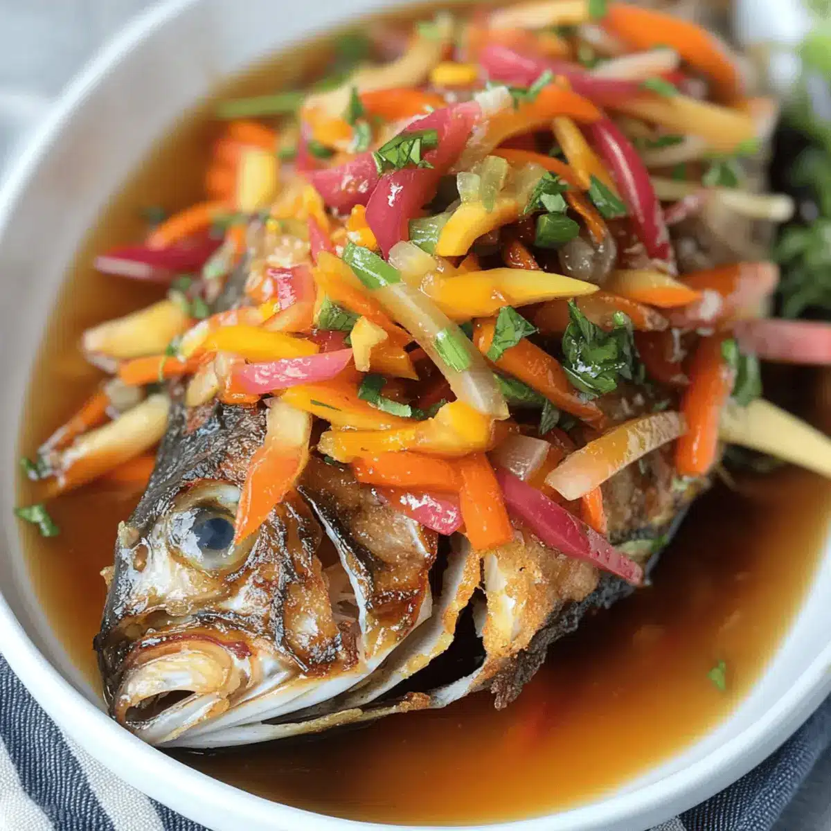 Preparing Escabeche – Sweet & Sour Fish ahead of time can save you valuable moments on busy weeknights! You can fry the tilapia up to 24 hours in advance and store it in an airtight container in the refrigerator to maintain its crispiness. The sweet and sour sauce, along with the sautéed vegetables, can also be prepared ahead and will stay fresh for up to 3 days in the fridge. Just keep the sauce separate from the fish until you’re ready to serve; this prevents the fish from becoming soggy. When it’s time to enjoy, simply reheat the sauce on the stove and pour it over the crispy fish, ensuring a restaurant-quality dinner with minimal effort!