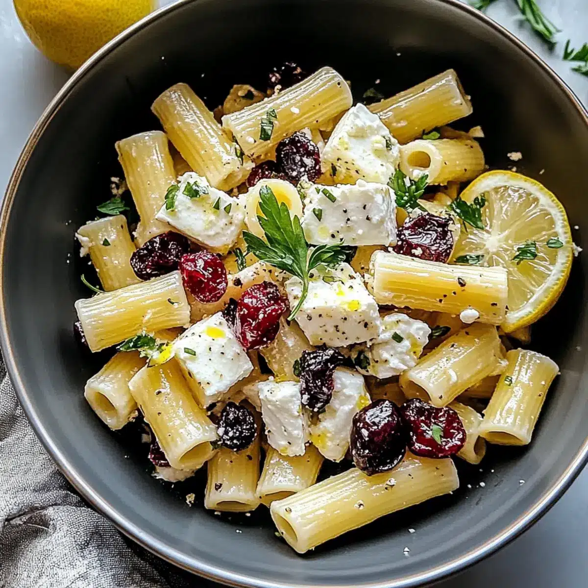 Feta & Cranberry Rigatoni Salad with Lemon Vinaigrette Bliss