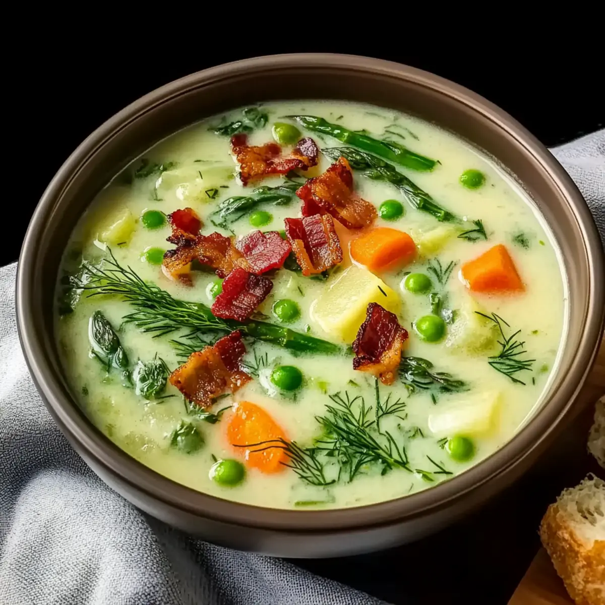 - Ladle the warm soup into bowls and garnish with crispy bacon bits and extra dill. Serve with slices of crusty bread.