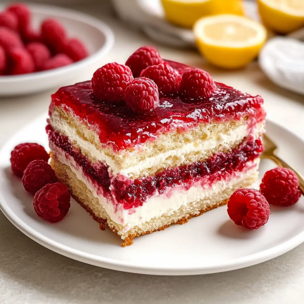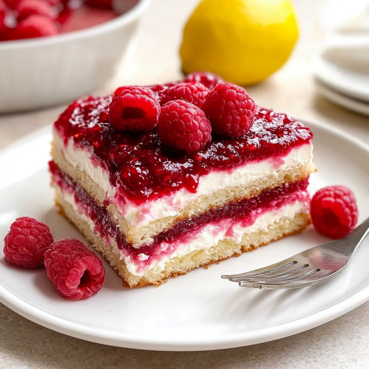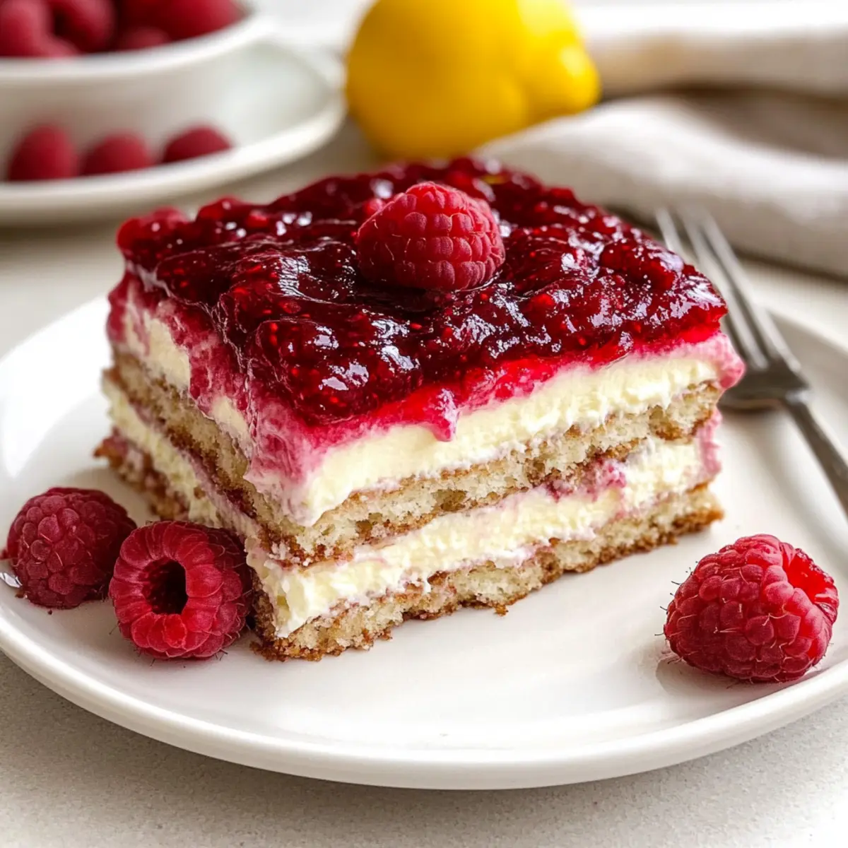 Cover the assembled Fresh Raspberry Tiramisu with plastic wrap and refrigerate for at least 8 hours, preferably overnight to allow flavors to meld beautifully. When ready to serve, garnish with fresh raspberries and lemon slices for a vibrant presentation. Cut into squares and enjoy the delightful balance of creamy and fruity flavors!