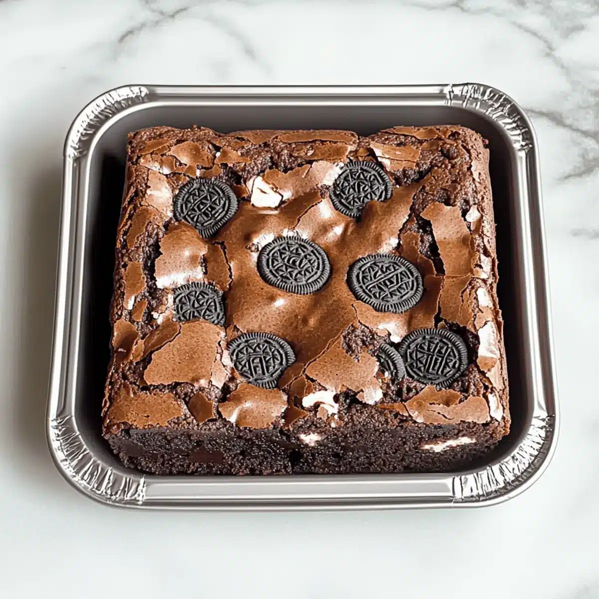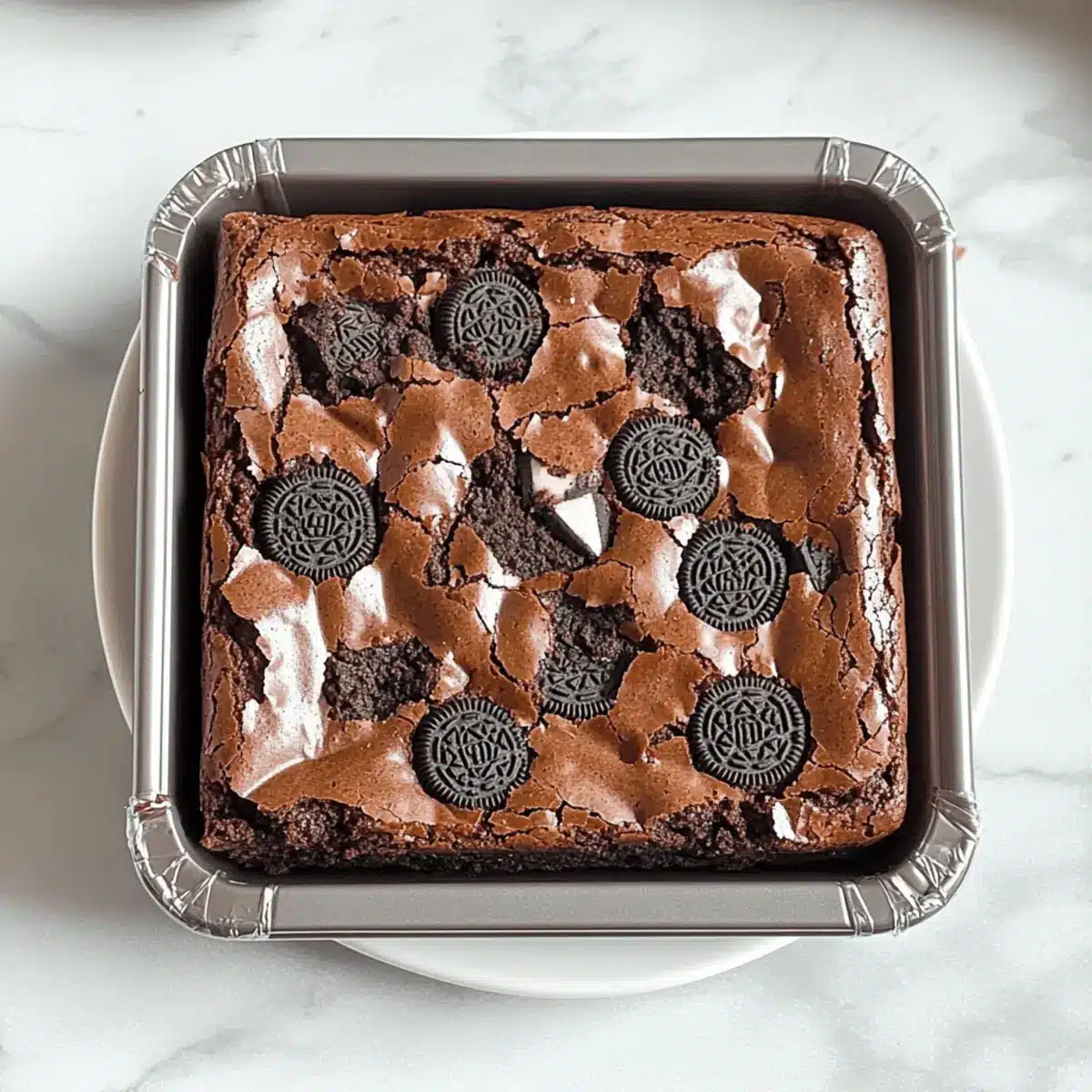 Once baked, remove your fudgy Oreo brownies from the oven and let them cool in the pan for at least 20 minutes. This crucial step allows the brownies to set properly, making them easier to slice into perfect squares. Once cooled, cut them and serve for a delightful treat that everyone will love!