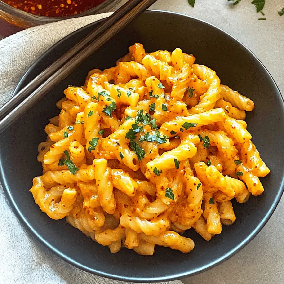 Plate up your creamy gochujang pasta immediately, garnishing with a sprinkle of freshly chopped parsley for a pop of color. This dish is best enjoyed hot, so dive in quickly and savor the beautiful blend of spicy and savory flavors that make this gochujang pasta a delightful meal.