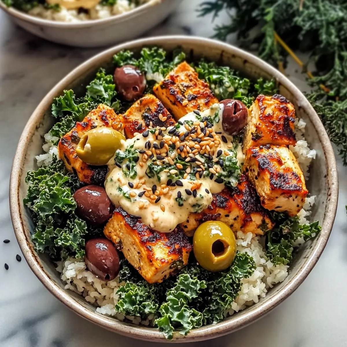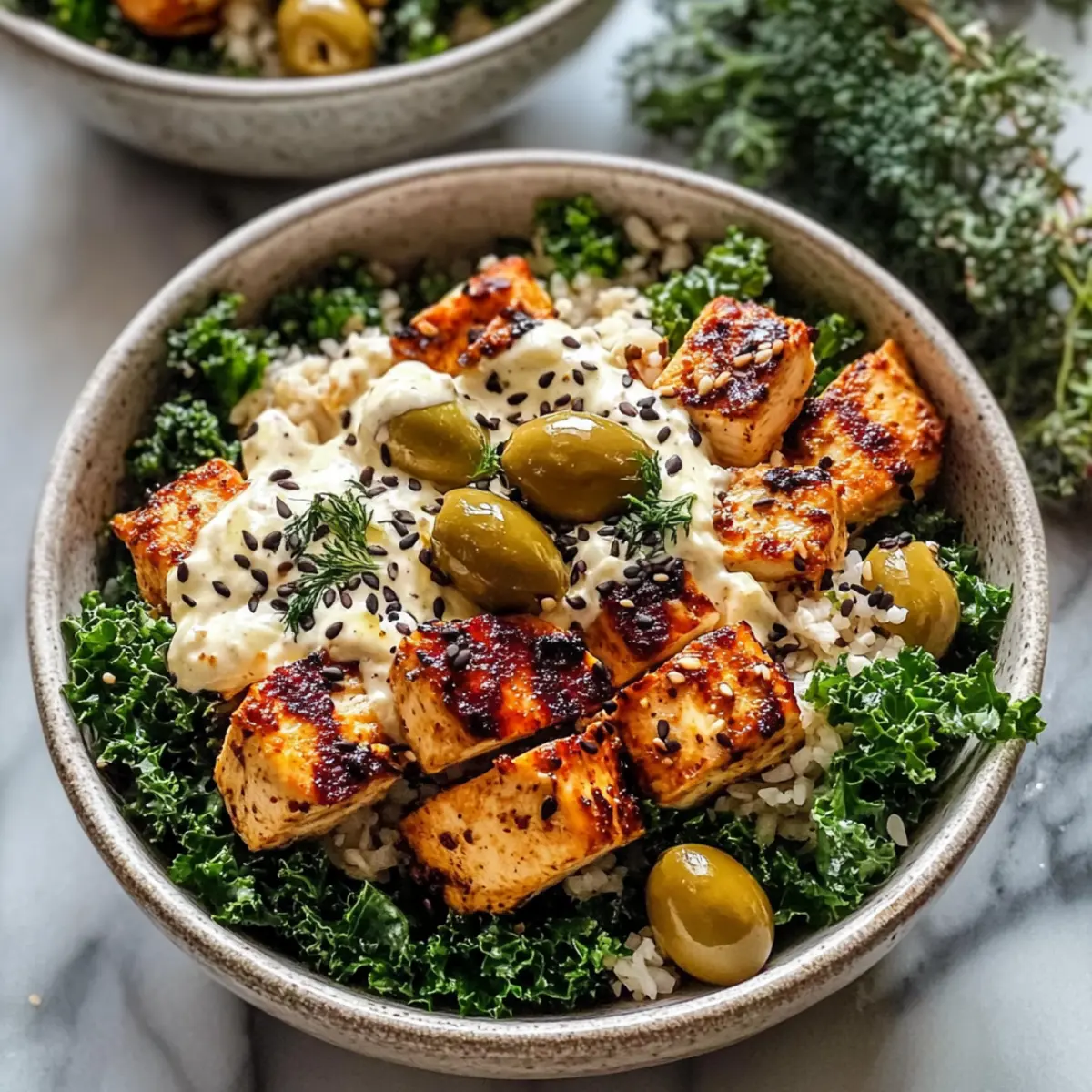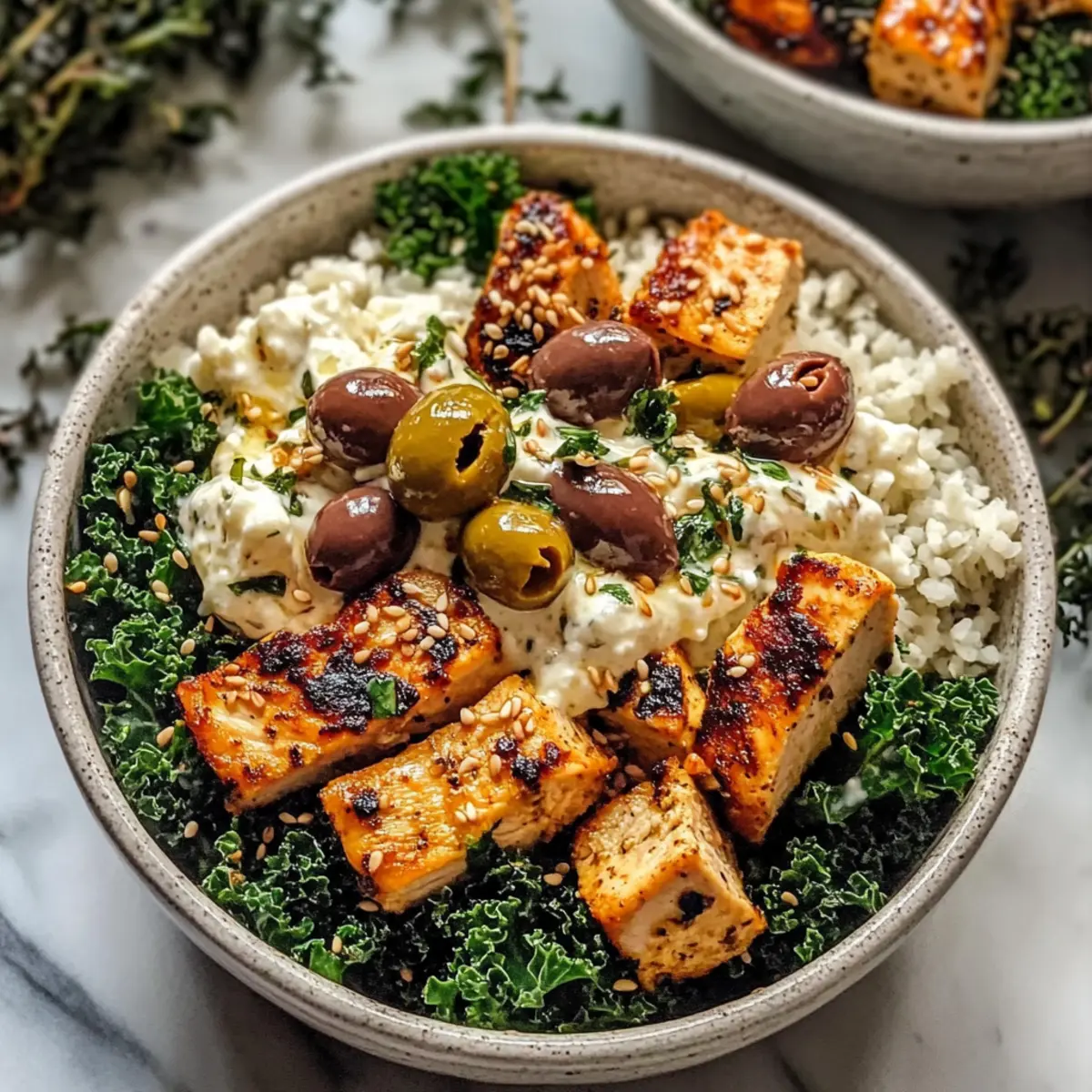 Greek Chicken Bowls with Creamy Tahini Feta Sauce for a Wholesome Dinner