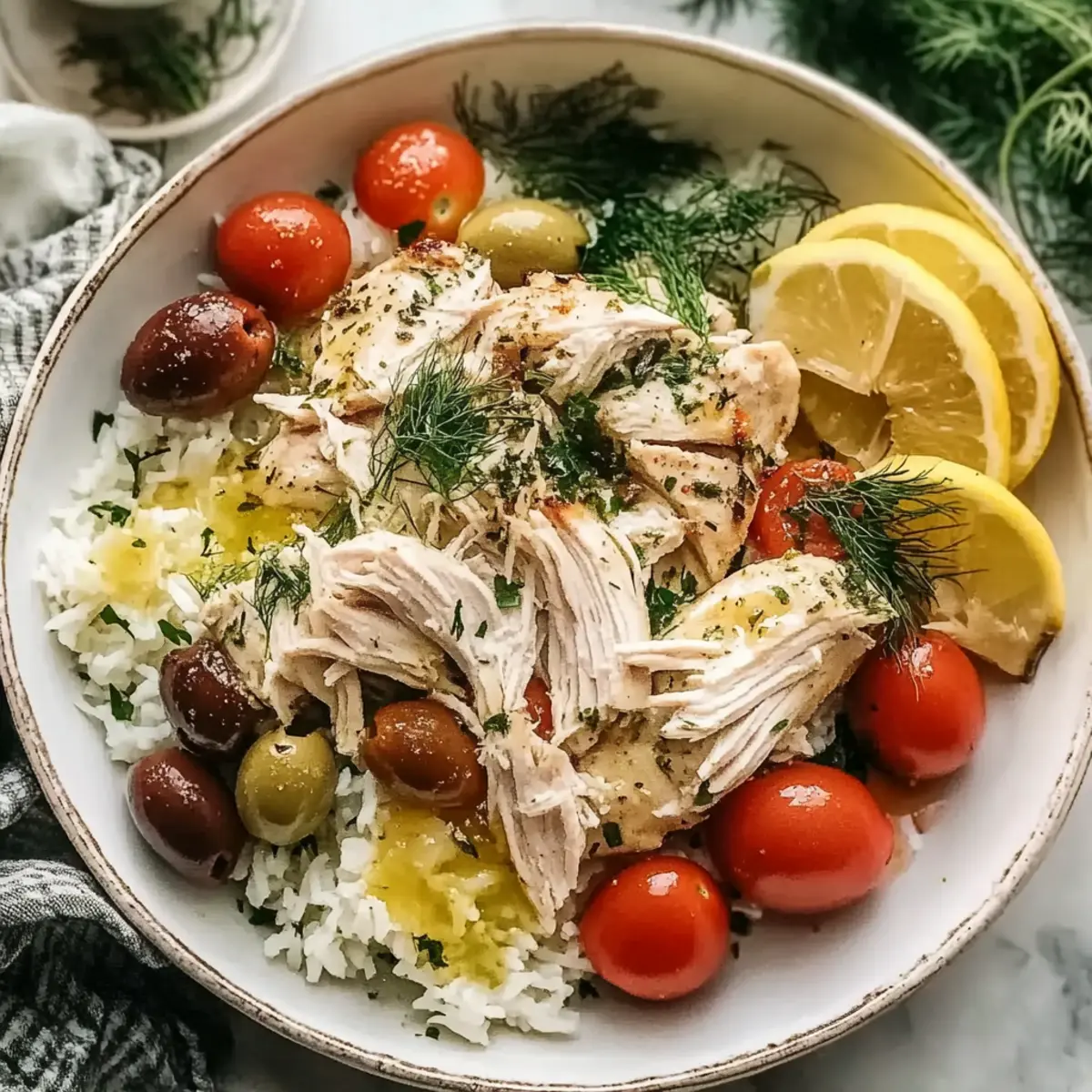 Now it’s time to enjoy your Slow Cooker Greek Chicken! Serve it over a bed of cooked rice, quinoa, or stuff it into warm pita bread for a delightful meal. Garnish with fresh dill, cherry tomatoes, sliced cucumbers, Kalamata olives, tzatziki sauce, and lemon wedges to elevate the presentation and bring the vibrant flavors of the Mediterranean to your dining table.