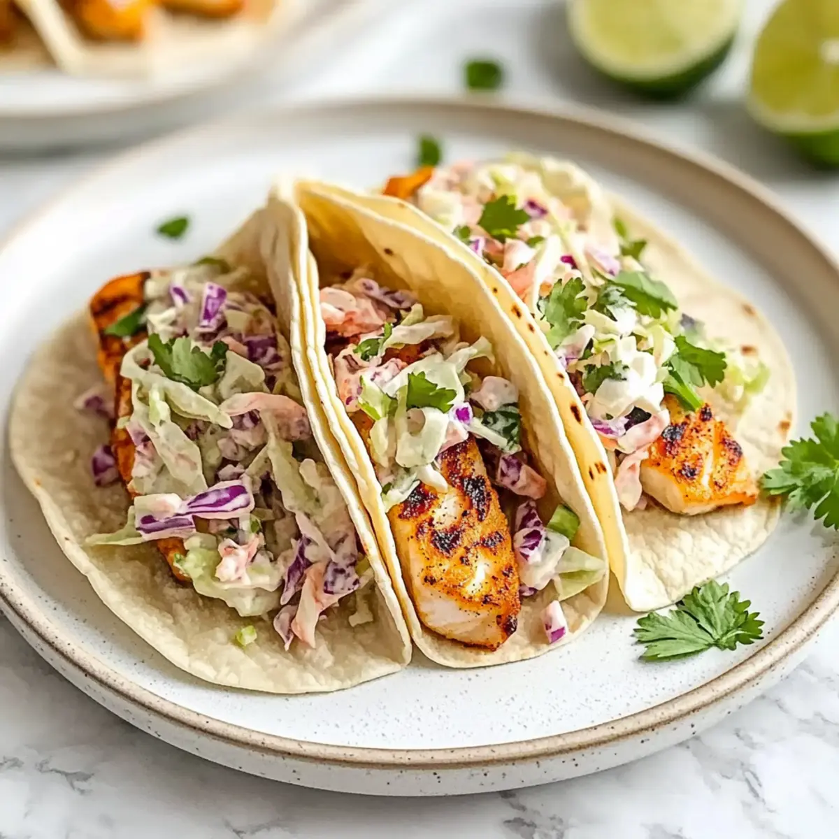 Freshness in Every Bite: Quick Grilled Fish Tacos burst with flavors from perfectly seasoned fish and crunchy cabbage slaw, making every mouthful a delight.