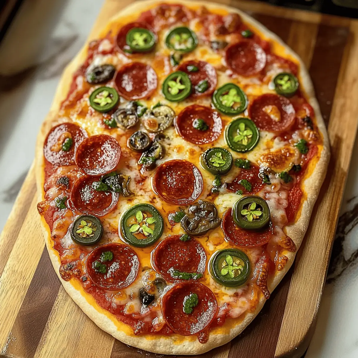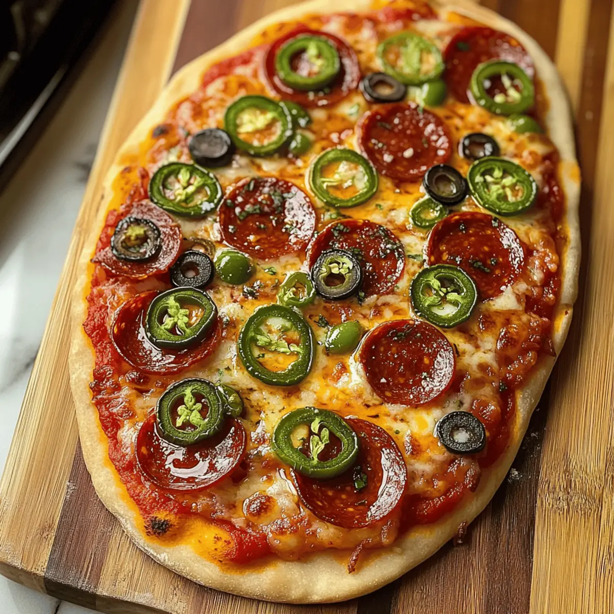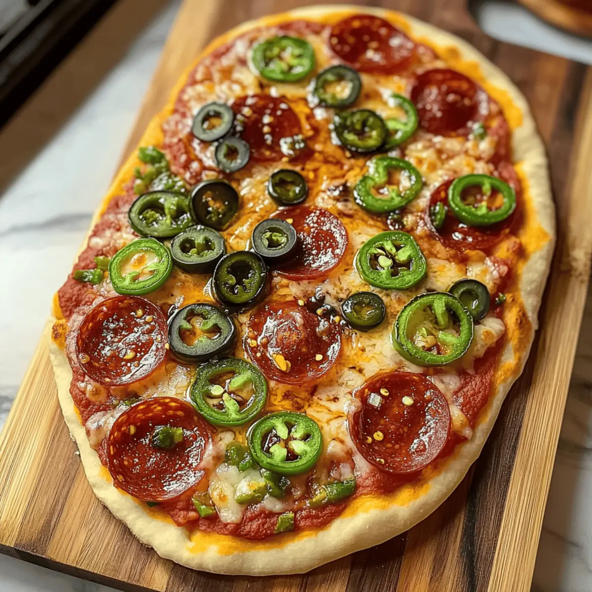 This recipe invites creativity! You can add toppings based on your preference and what you have on hand, such as bell peppers, mushrooms, or even different cheeses like feta or gouda for a unique twist. For a milder pizza, simply reduce the amount of jalapeños and chili flakes.