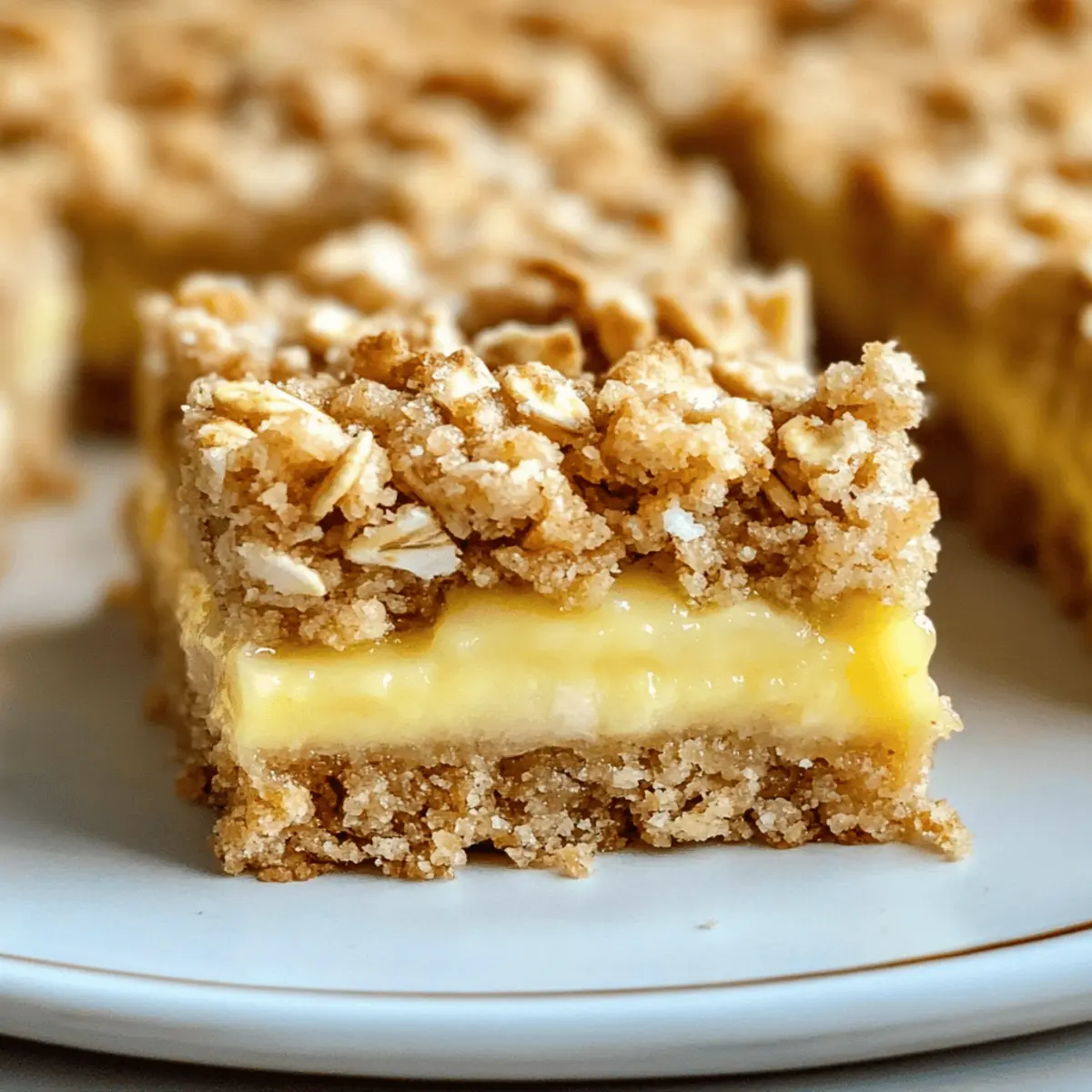 These Lemon Oatmeal Crumble Bars are perfect for busy home cooks looking to save time! You can prepare the crust and topping up to 24 hours in advance; simply store them in an airtight container at room temperature. The lemon filling can also be made ahead, but it’s recommended to prepare it the same day you bake the bars for the freshest flavor. When you’re ready to assemble the bars, simply press the crust into the pan, pour over the lemon filling, sprinkle the topping, and bake. This way, you’ll enjoy a delicious homemade dessert with minimal last-minute effort, all while keeping the flavors just as vibrant and satisfying!