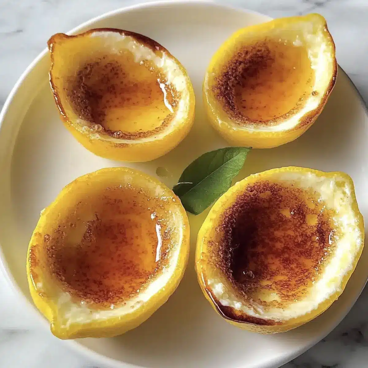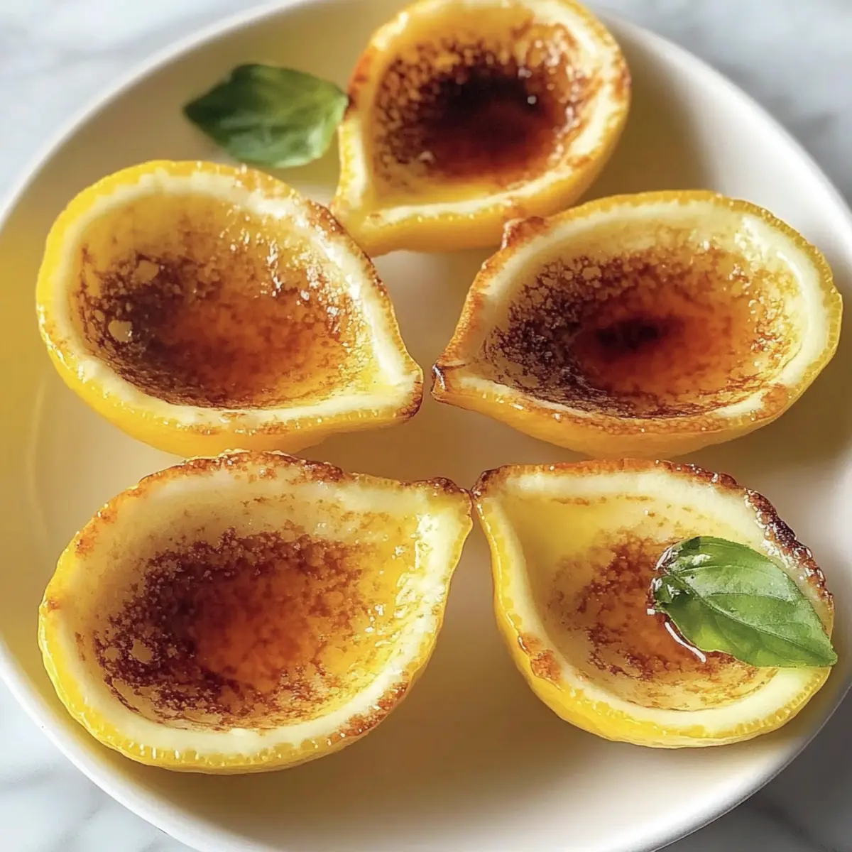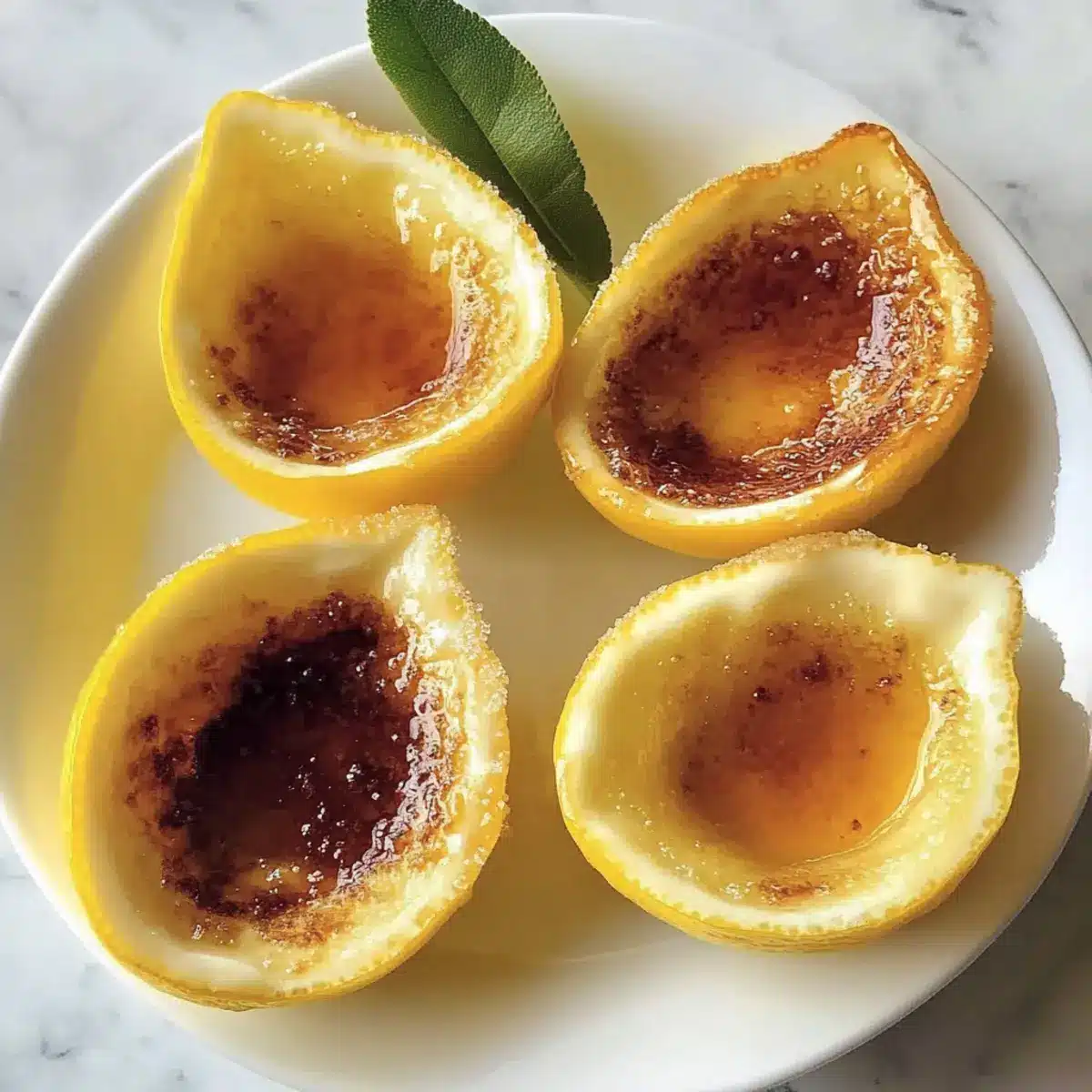When you’re ready to serve the Lemon Posset Brûlée, sprinkle a thin, even layer of granulated sugar over the top of each filled lemon shell. Using a culinary blowtorch, caramelize the sugar until it turns golden and bubbly. Be careful not to burn it; a few seconds will suffice for that perfect crispy texture.