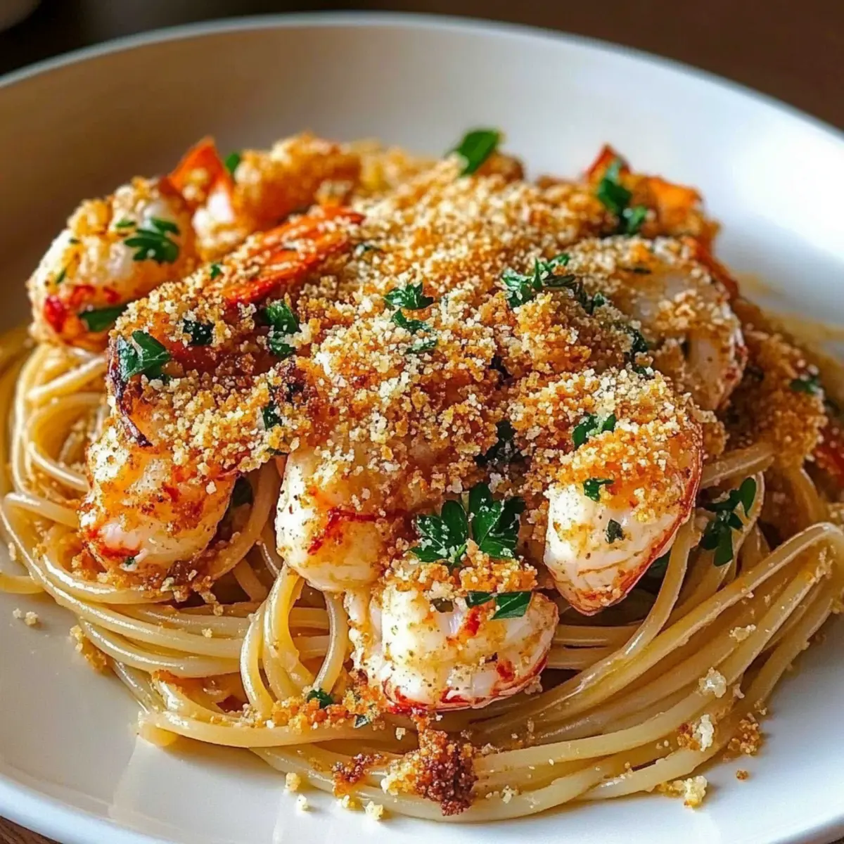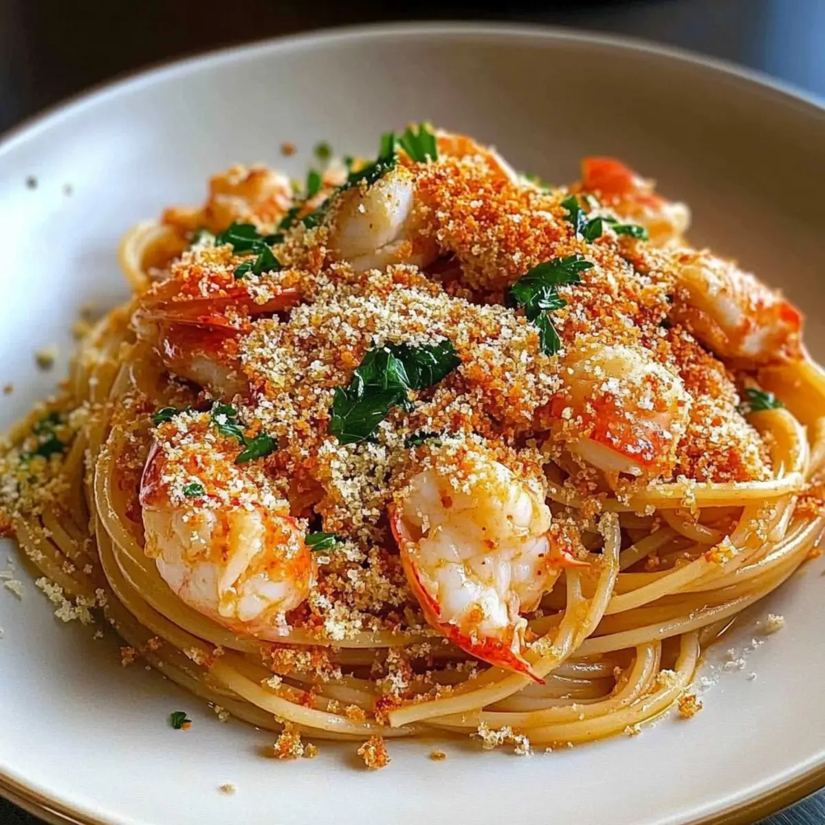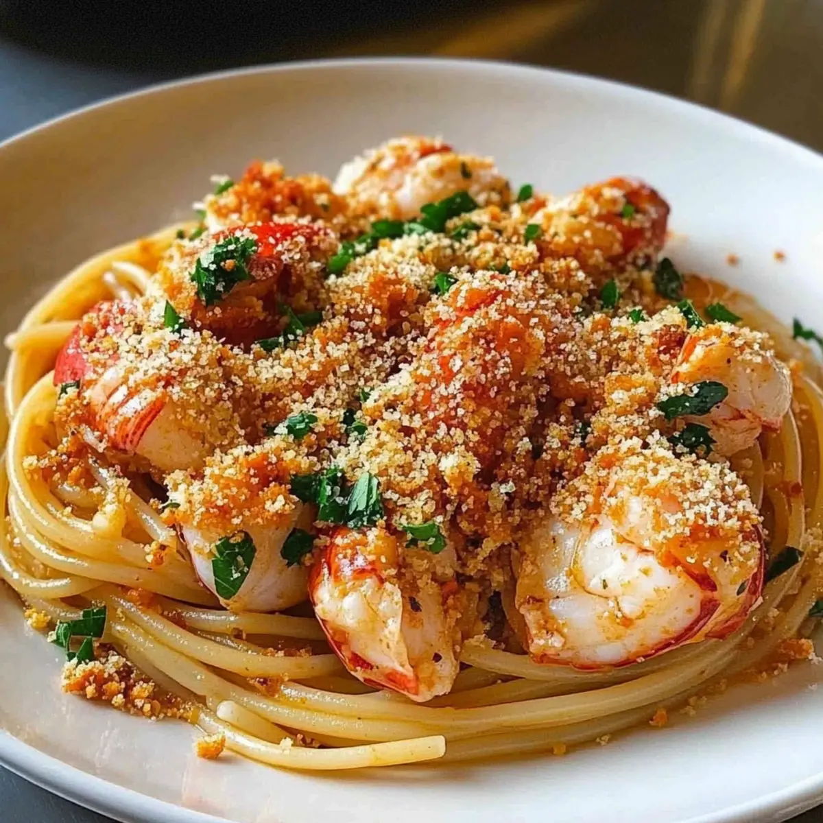 Garnish Wisely: Fresh herbs brighten up your Lobster Spaghetti with Chili Breadcrumbs. Don’t skip them— parsley or chives can really elevate the dish!