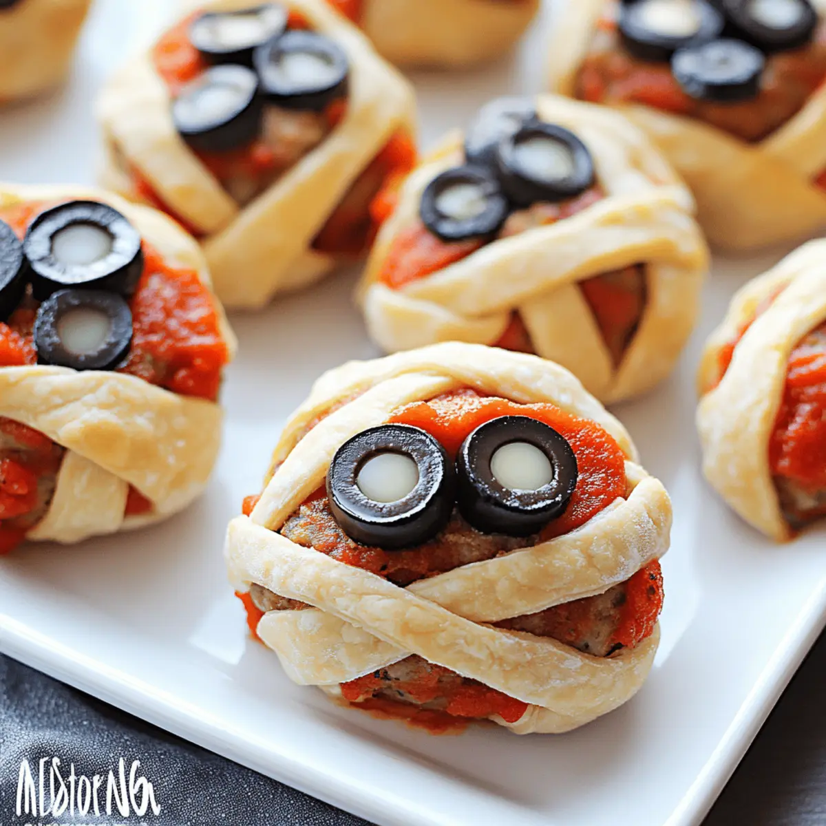 Fun Presentation: Arrange the Meatball Mummies on a platter with a drizzle of marinara sauce for a festive display that enhances their spooky appeal.