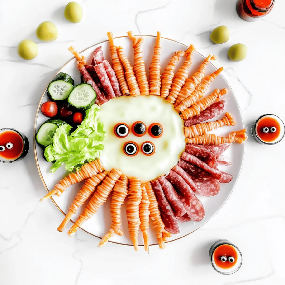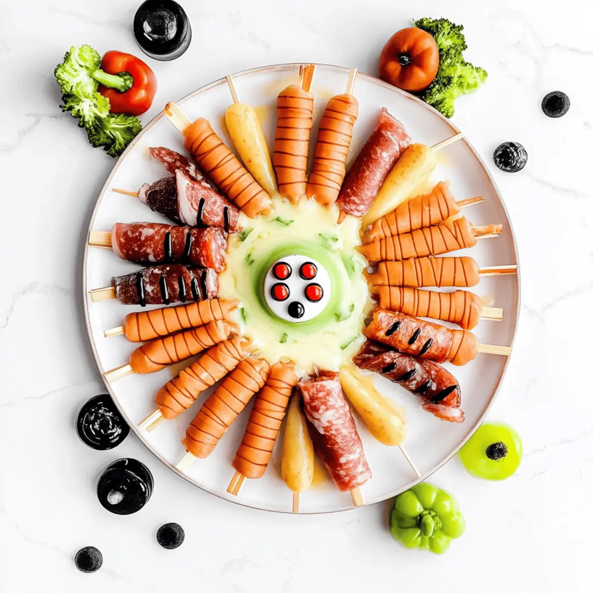 Extra Garnish: Incorporate mini sweet peppers or black olives as playful accents. They can resemble pumpkins or other Halloween-themed treats, enhancing both the presentation and flavor variety.