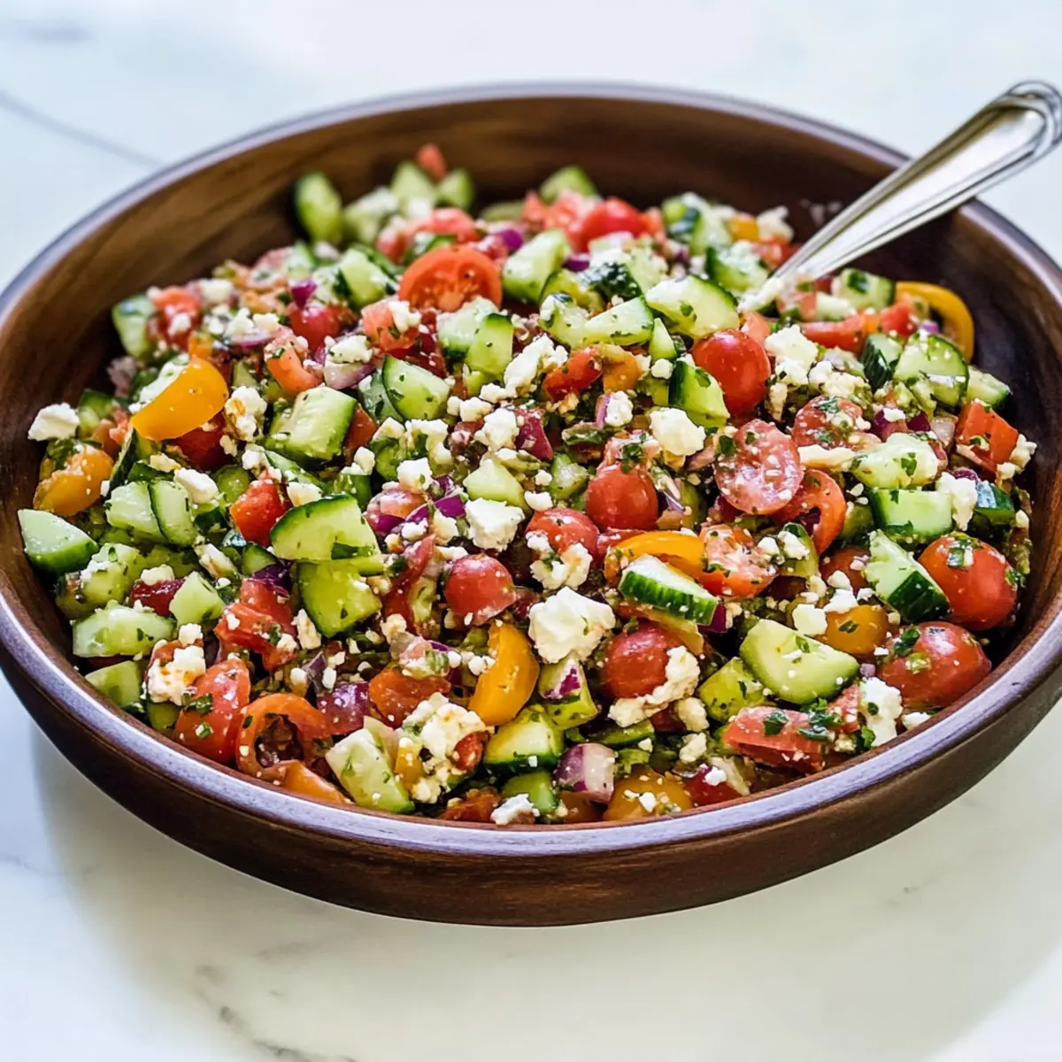 Uniform Dicing: Ensure all salad ingredients are diced to a similar size for evenly distributed flavors in every bite of your Mediterranean chopped salad.