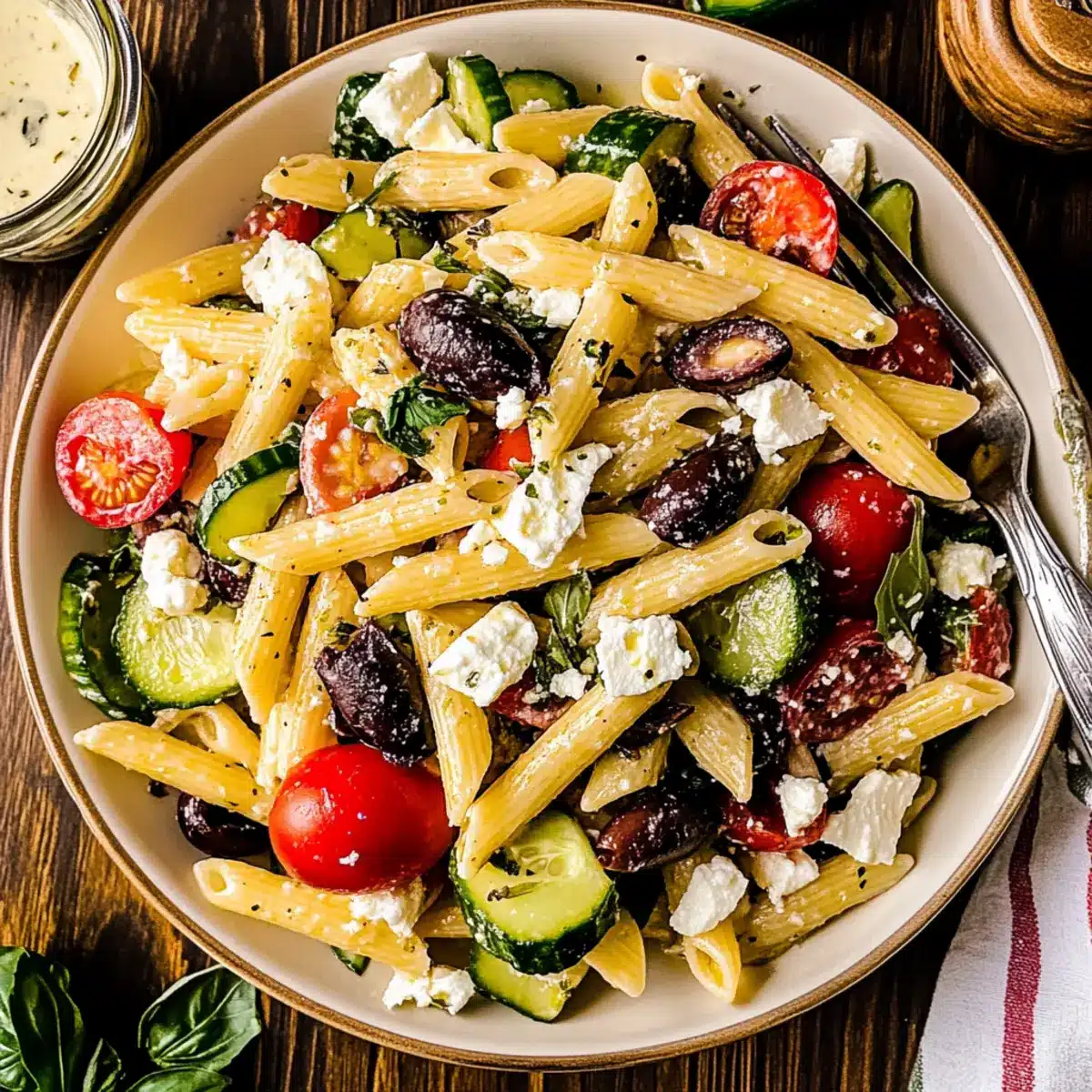 • Choose the Right Pasta: Opt for short shapes like rotini or penne; they hold the dressing better and enhance the overall texture of the Mediterranean Pasta Salad.